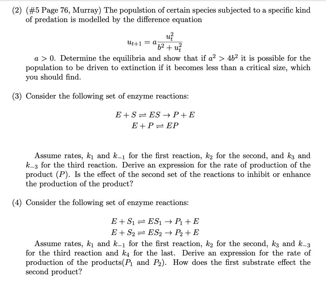 (2) (#5 Page 76, Murray) The populstion of certain species subjecte...