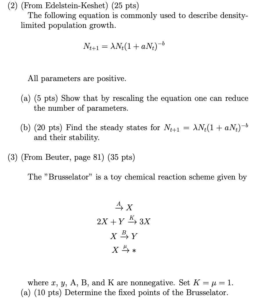 (2) (From Edelstein-Keshet) (25 pts) The following equation is com...