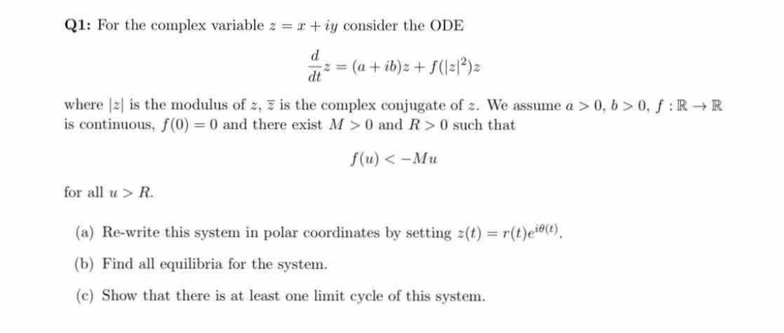 Q1: For the complex variable 2 = I + iy consider the ODE where 2 i...