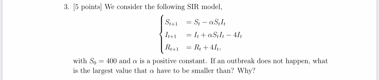 3. [5 points] We consider the following SIR model, St+1 = St - aSt...