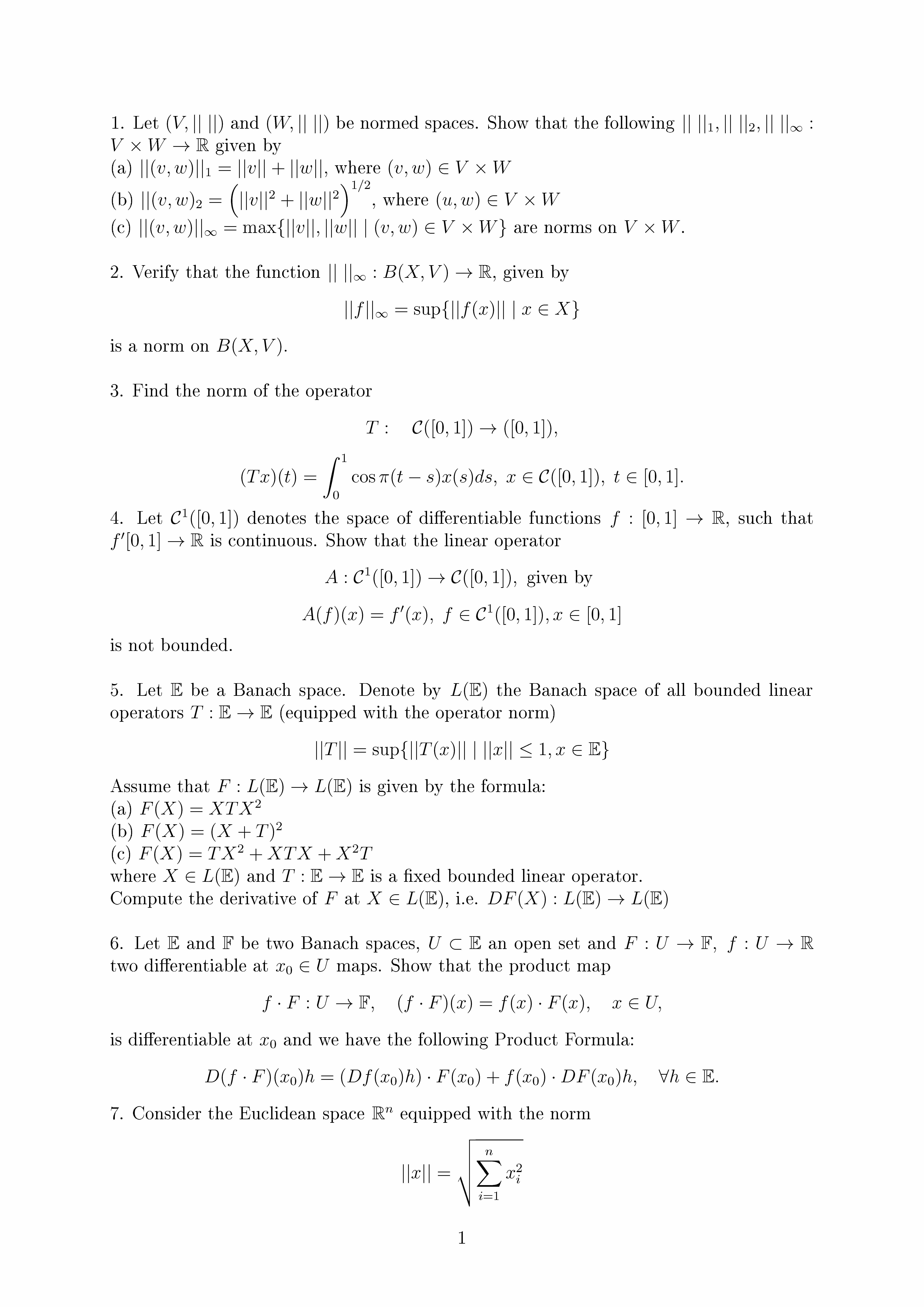 1. Let (V; jj jj) and (W; jj jj) be normed spaces. Show that the fo...