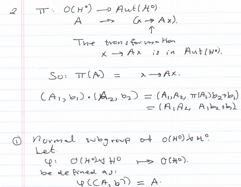 1. What is the normal subgroup of a semi-direct product Isom(H) = O...