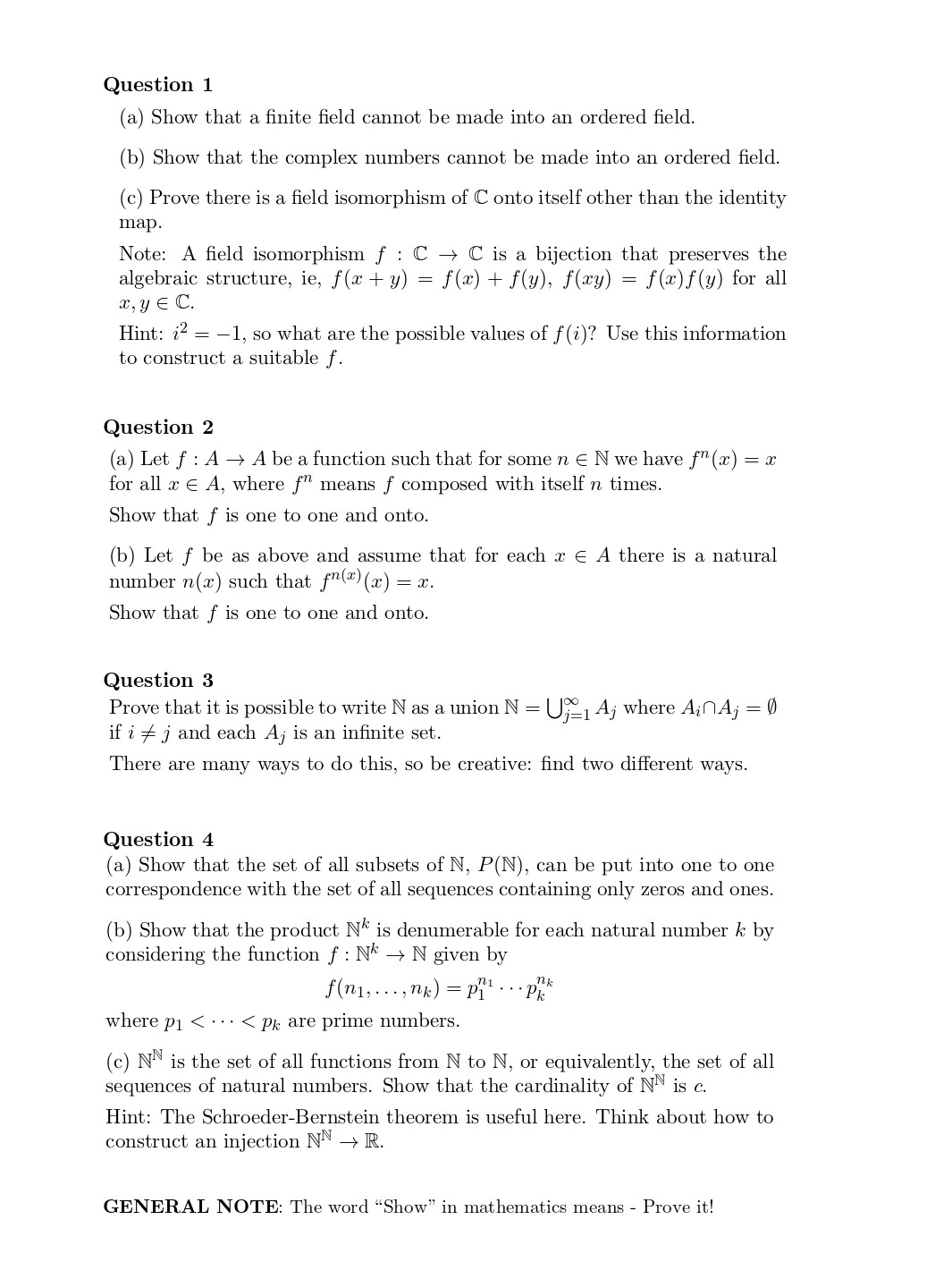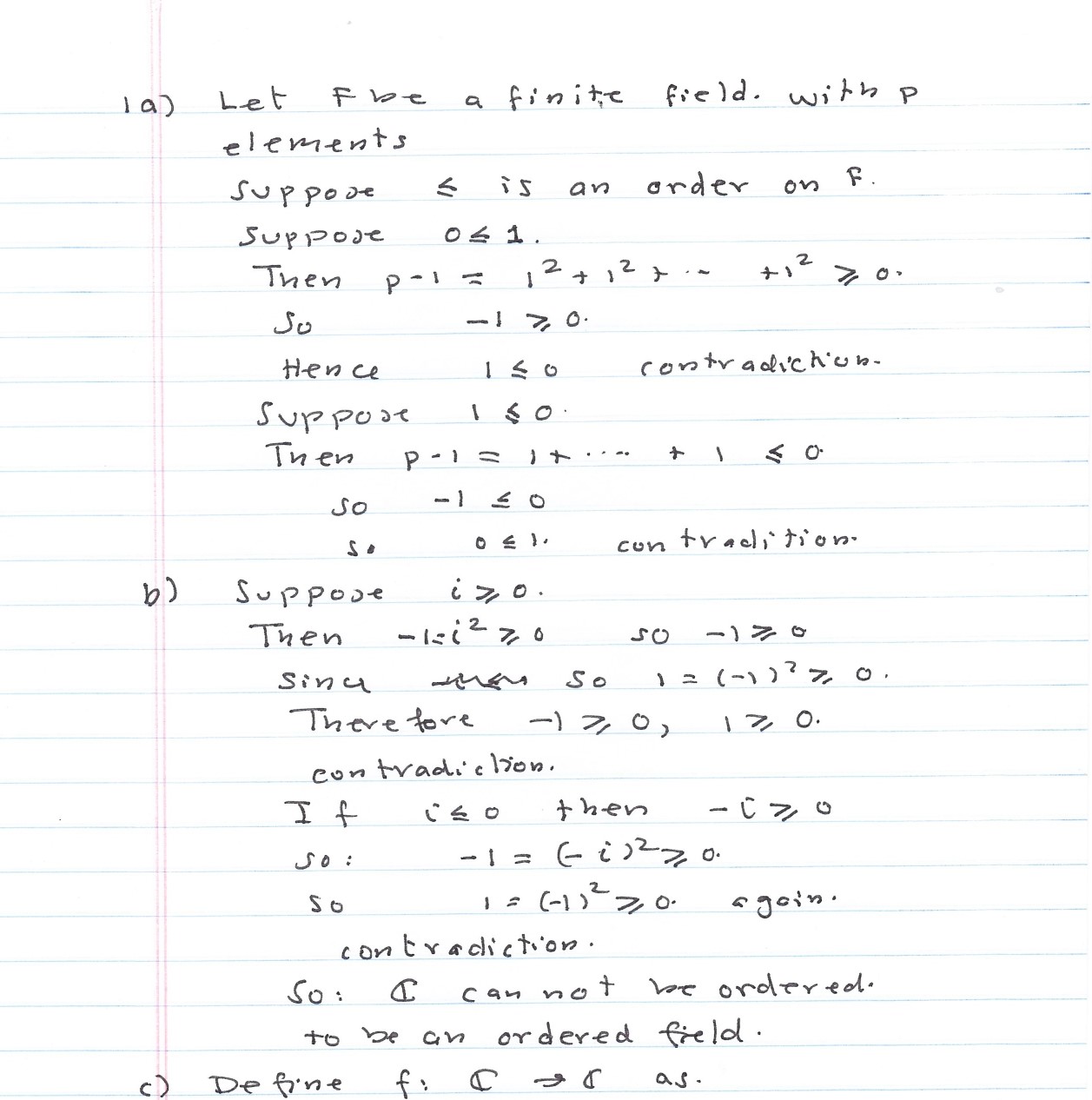 Question 1 (a) Show that a finite field cannot be made into an ord...
