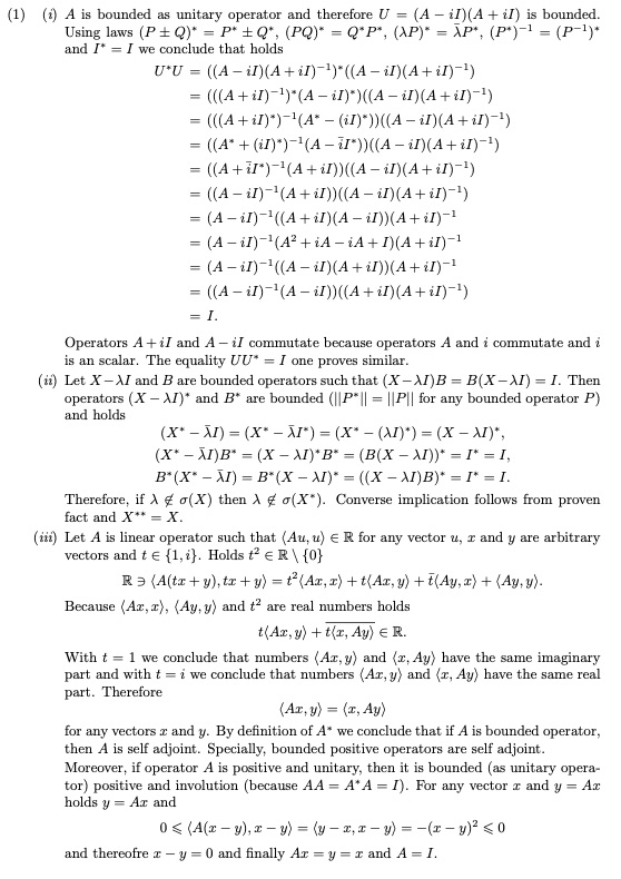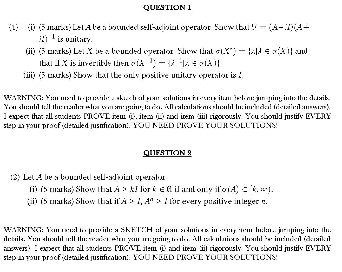 QUESTION 1 (1) (i) (5 marks) Let A be a bounded self-adjoint oper...