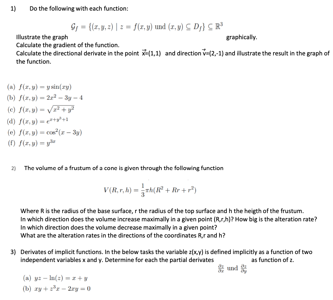 1) Do the following with each function: Gf{(x,y,2)/z=f(x,y)und =...