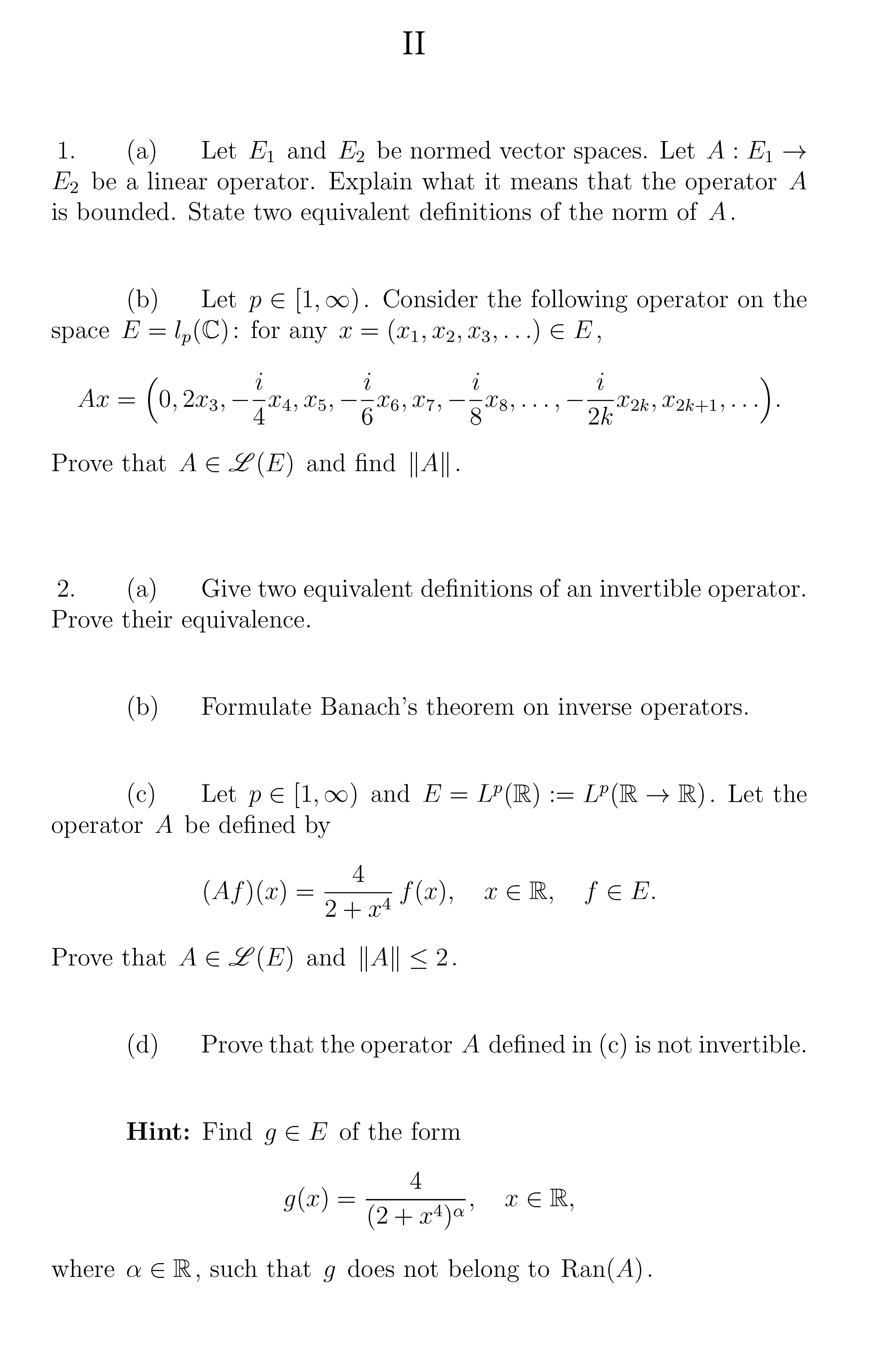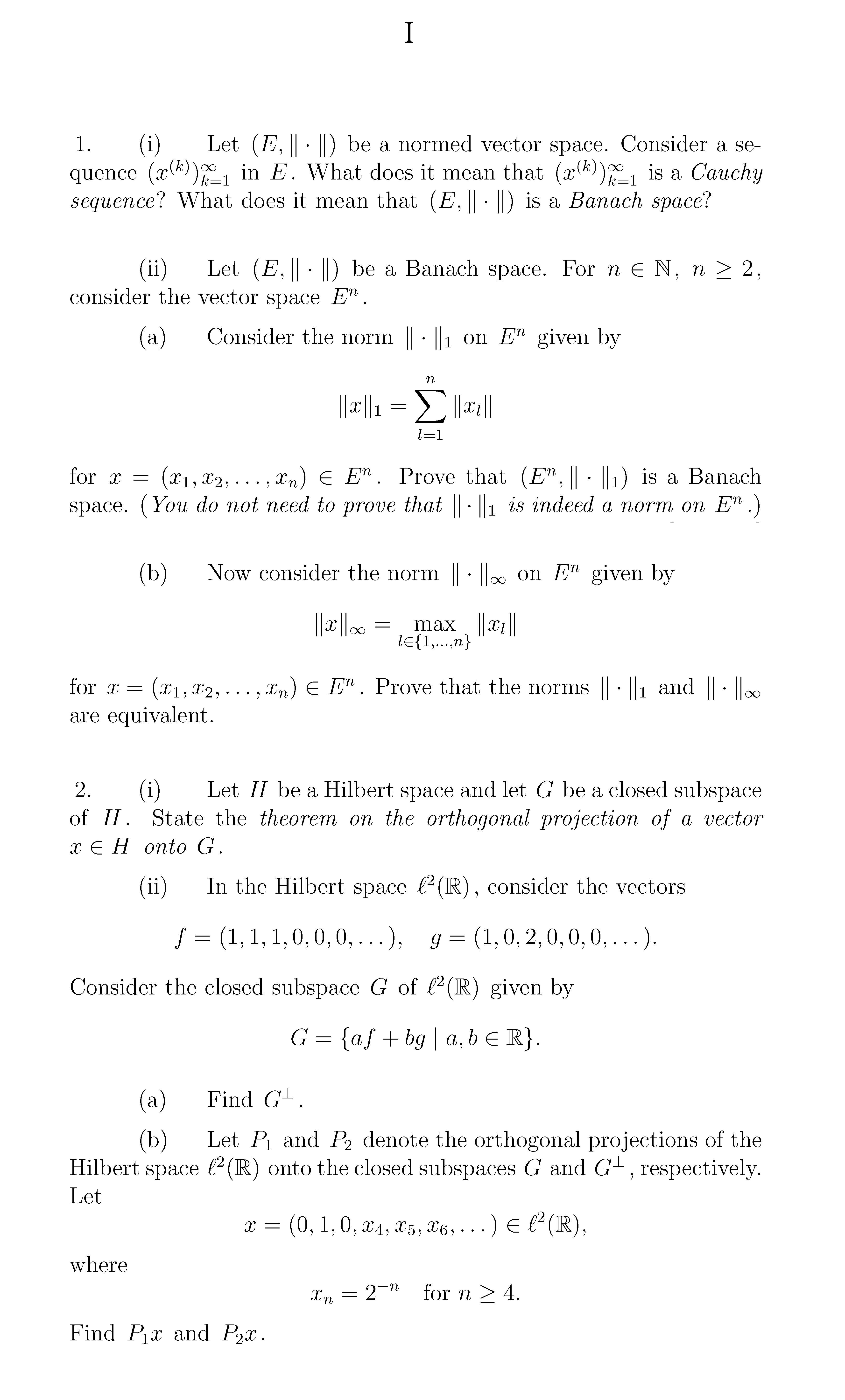 1. (i) Let (E,k · k) be a normed vector space. Consider a sequence...