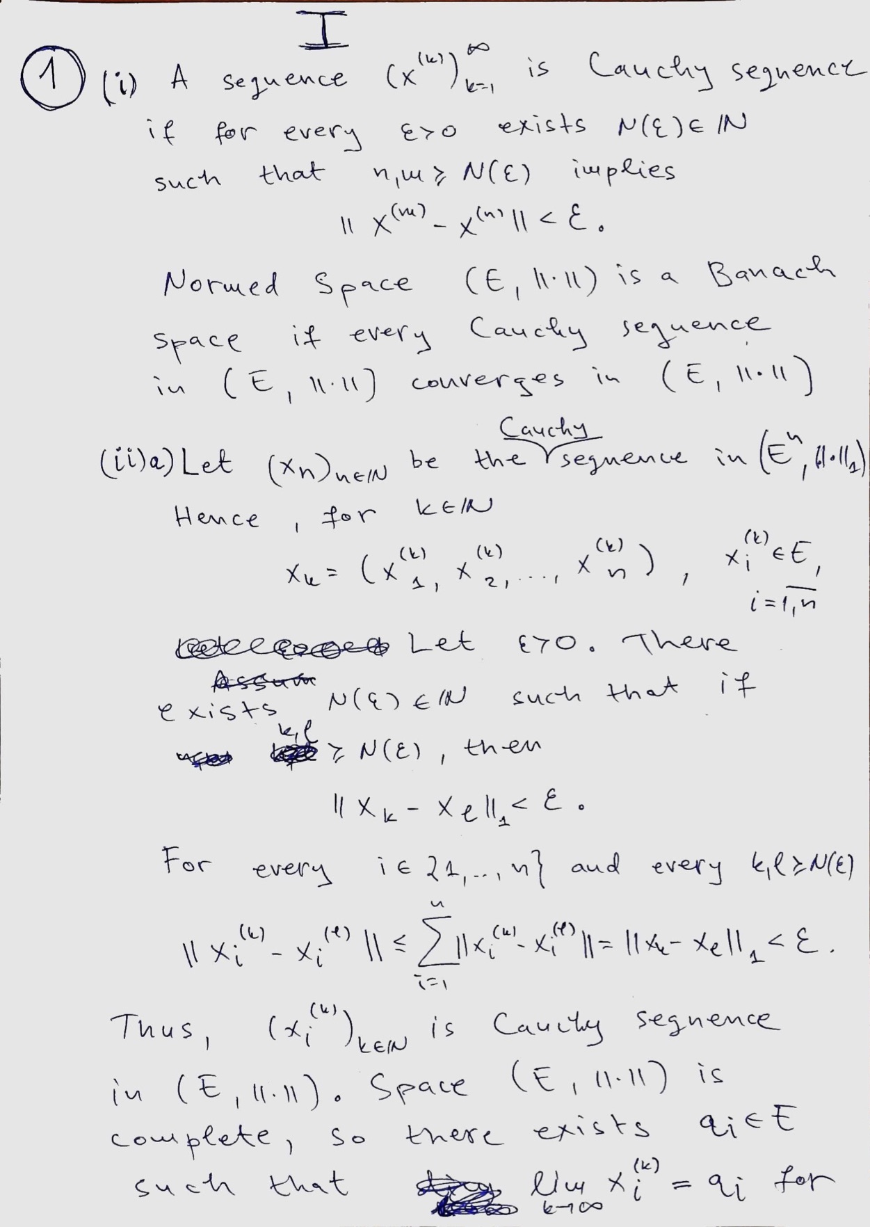 1. (i) Let (E,k · k) be a normed vector space. Consider a sequen...