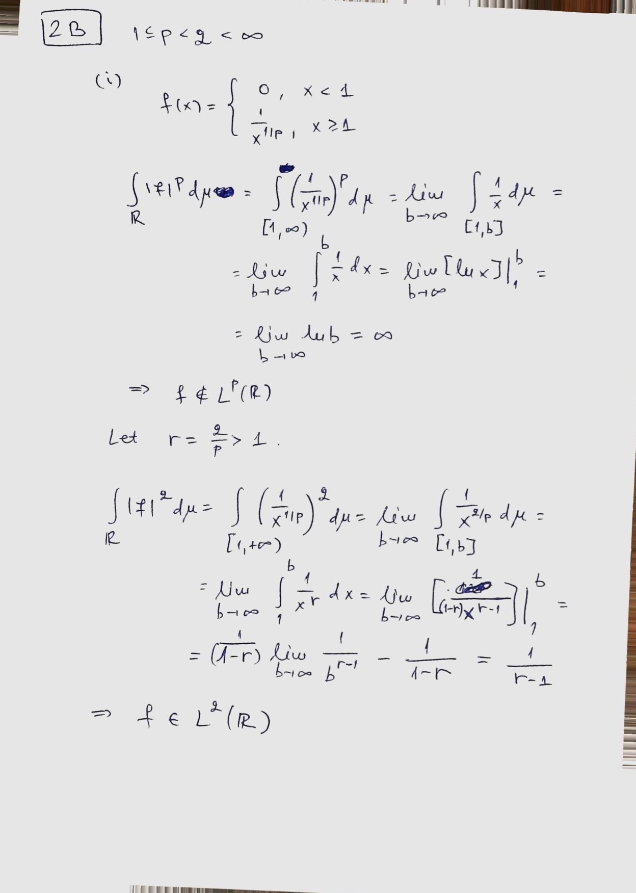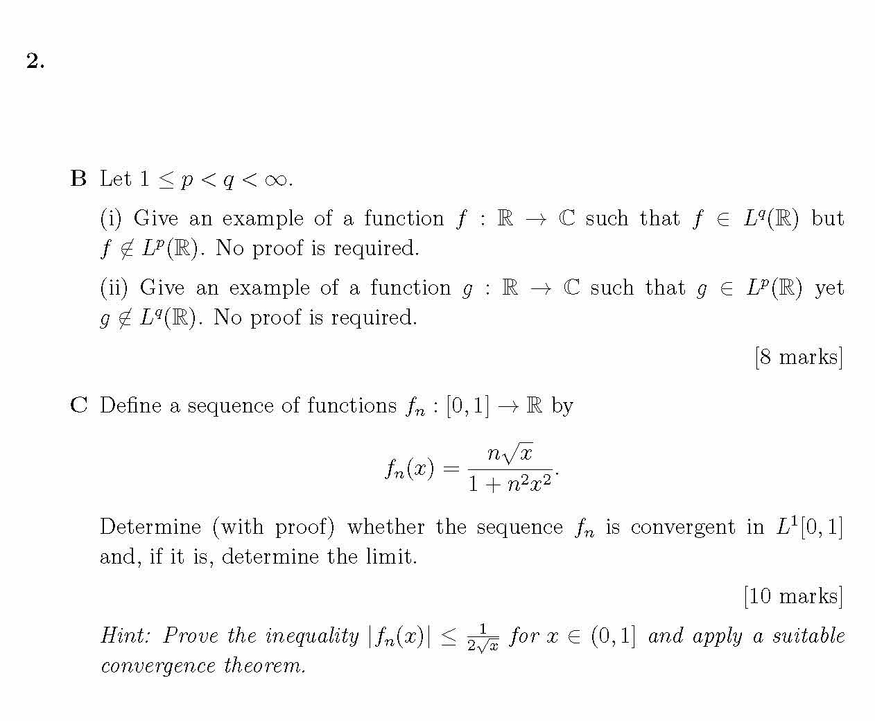 2. B Let1≤p<q<∞. (i)Give an example of a function f :Râ...