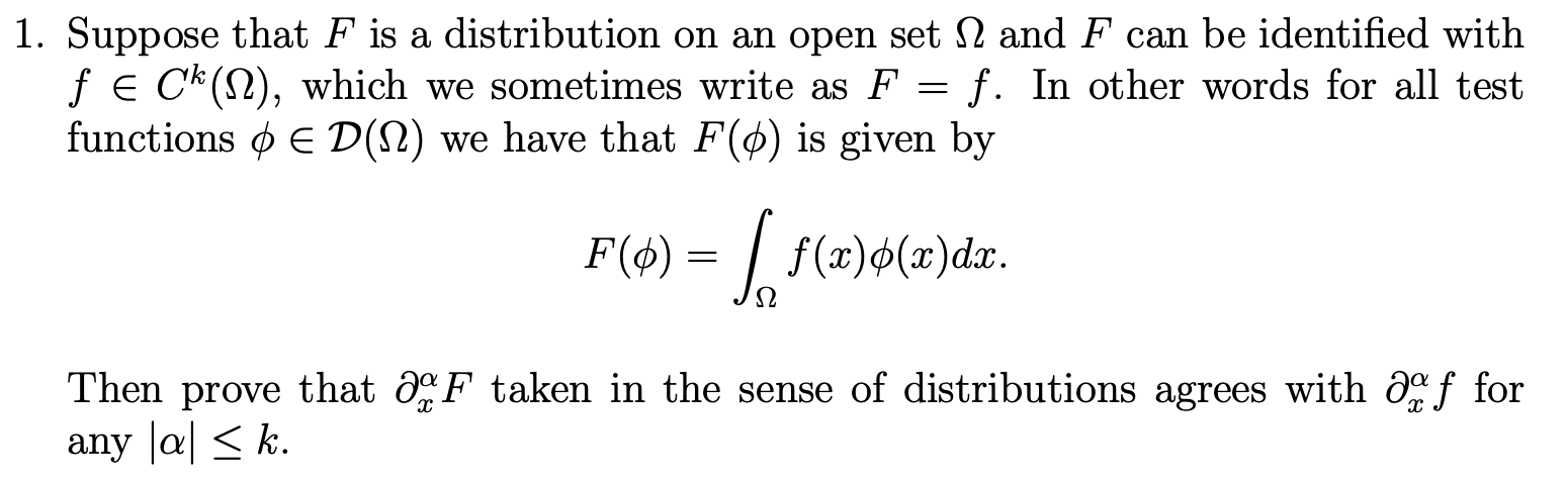 1. Suppose that F is a distribution on an open set S and F can be i...