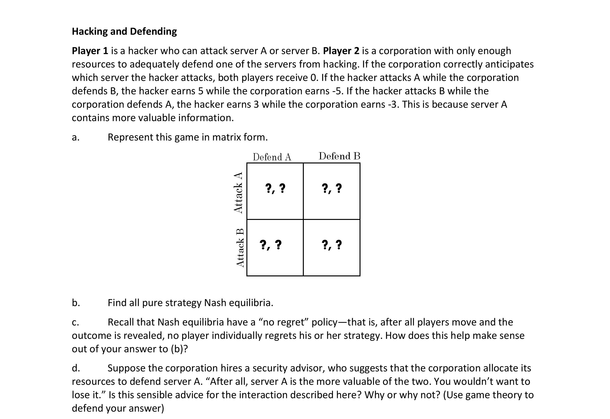 Hacking and Defending Player 1 is a hacker who can attack server A...