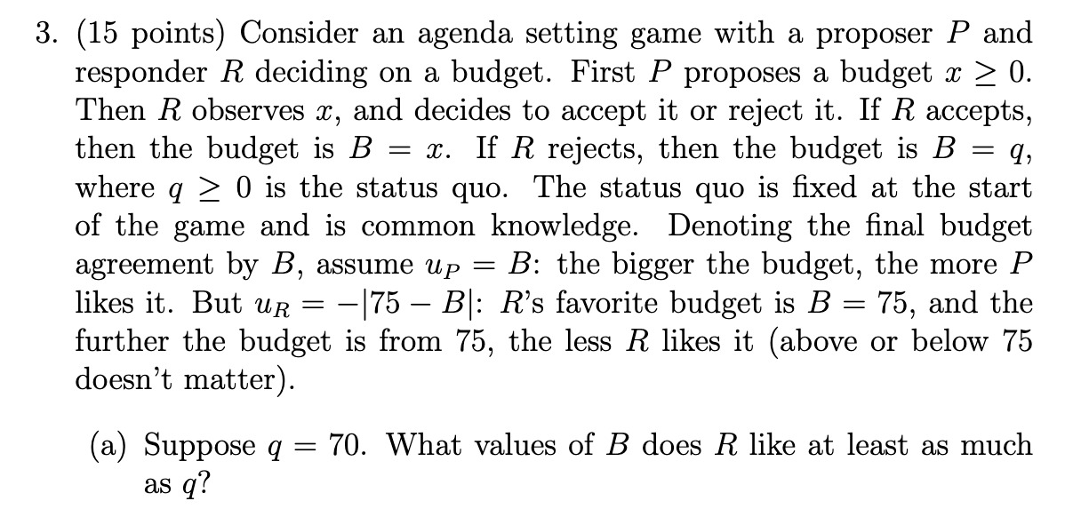 3. (15 points) Consider an agenda setting game with a proposer P an...