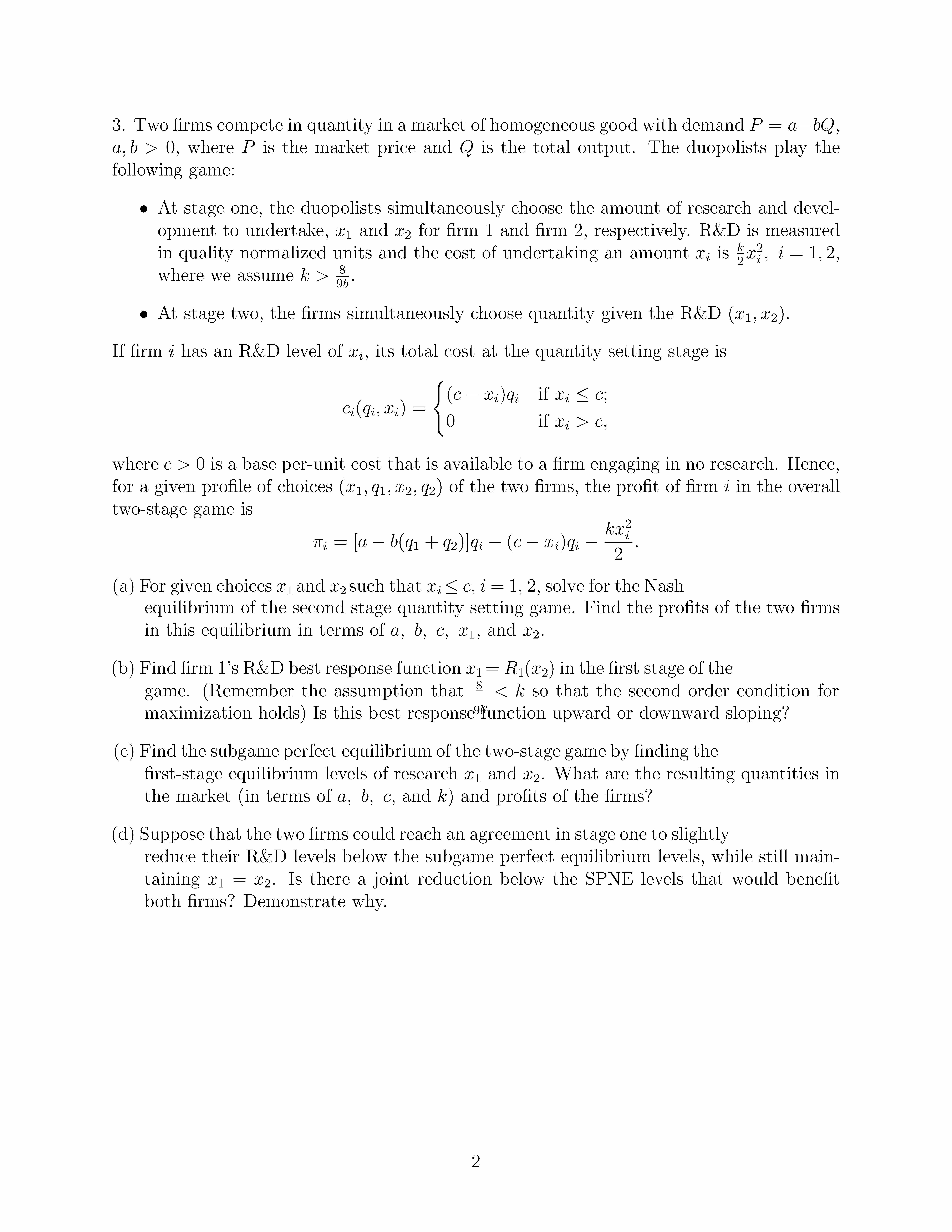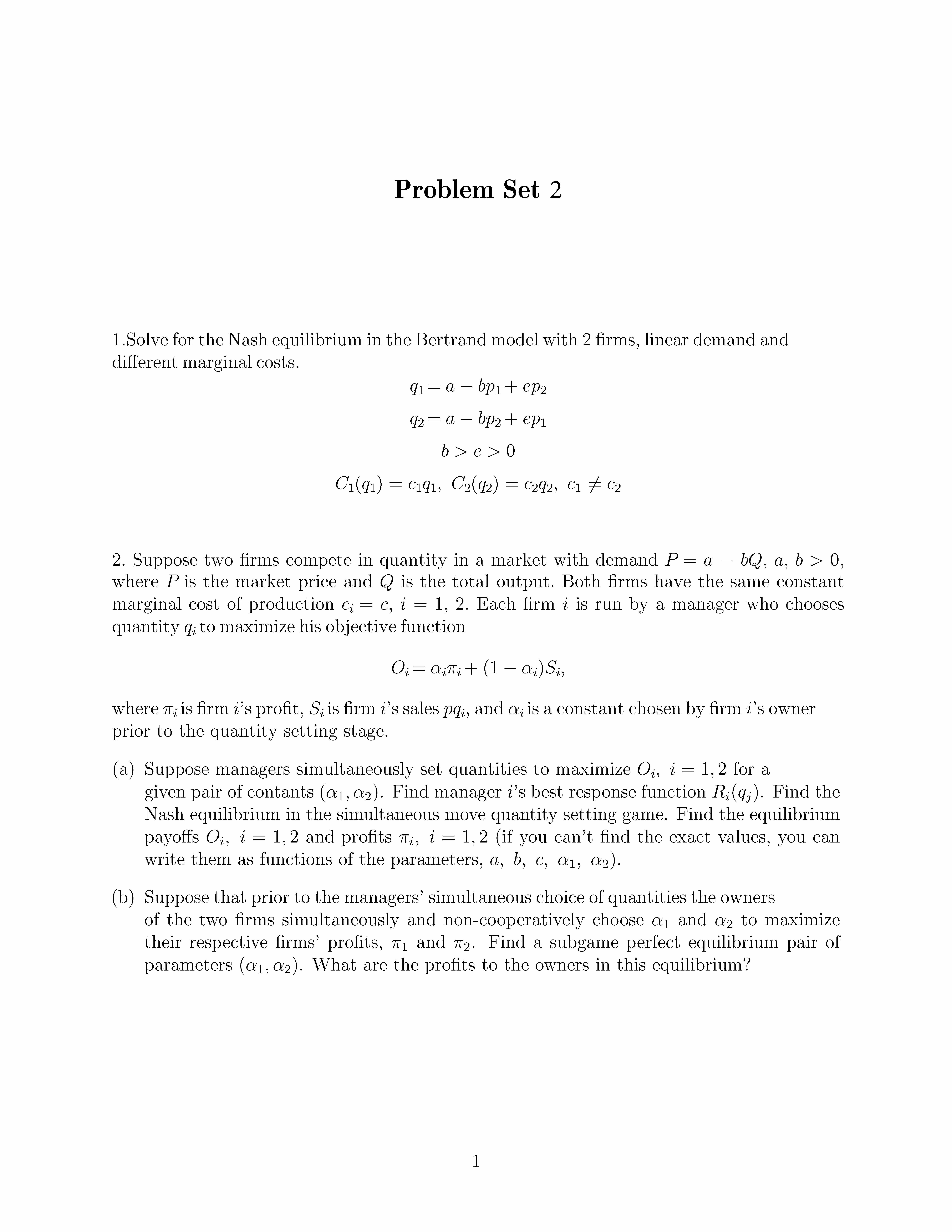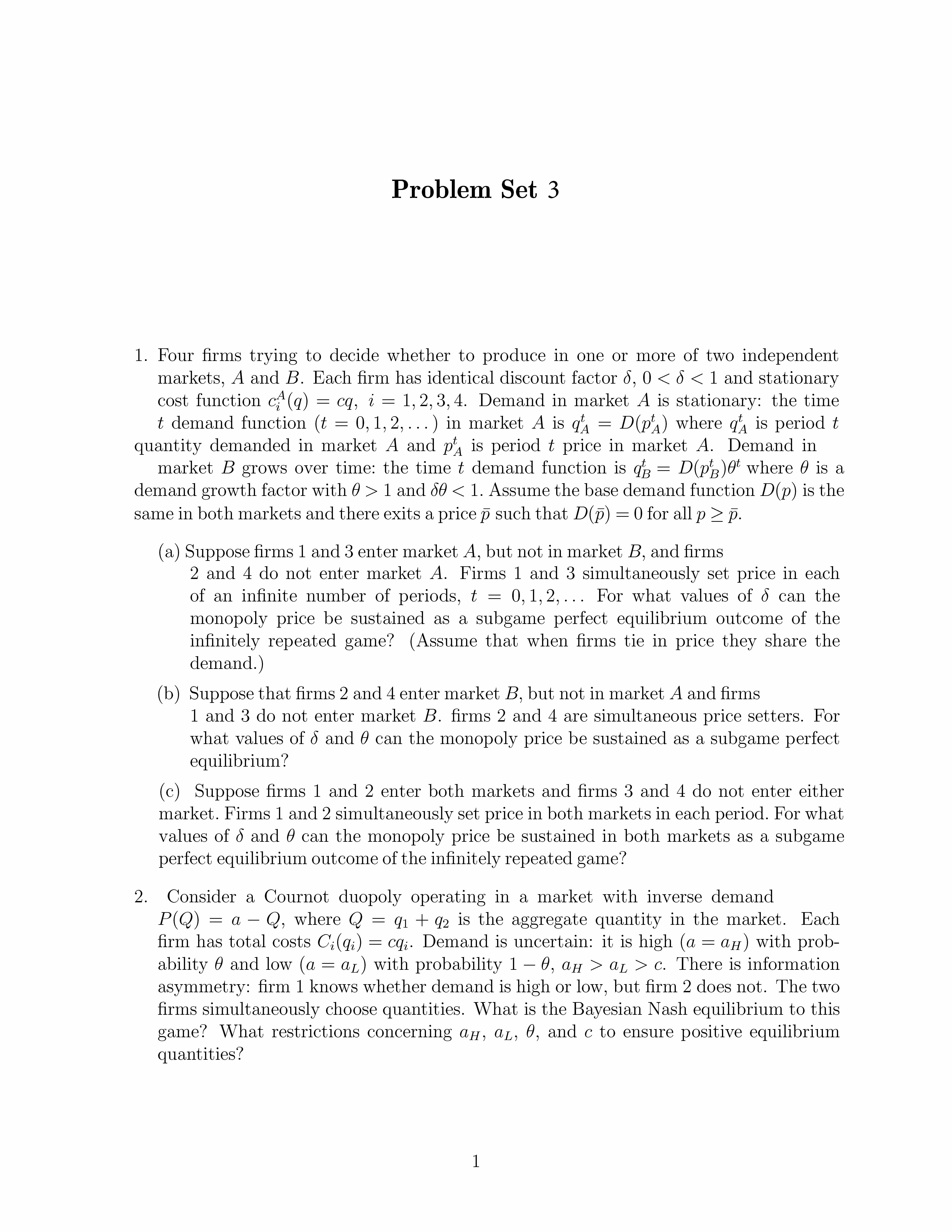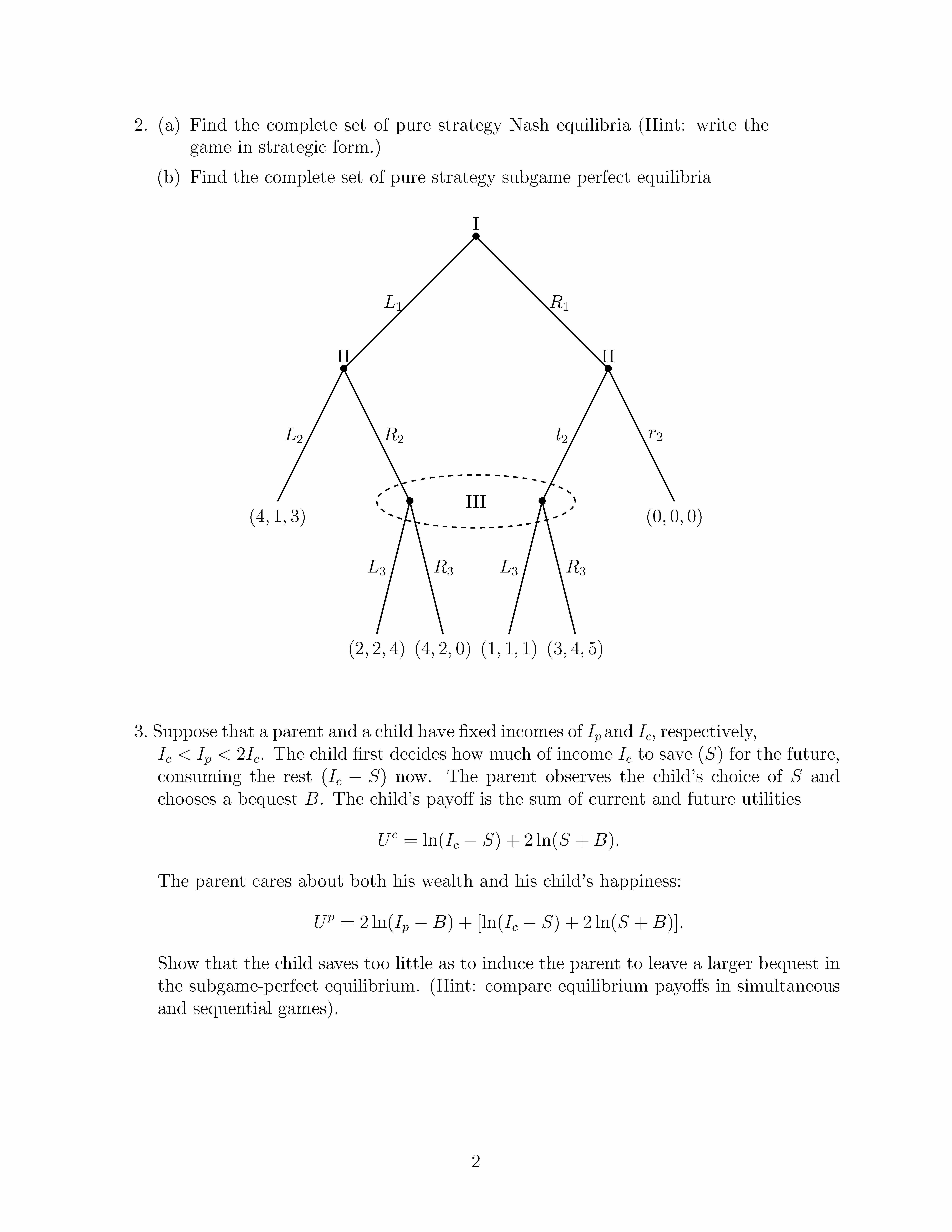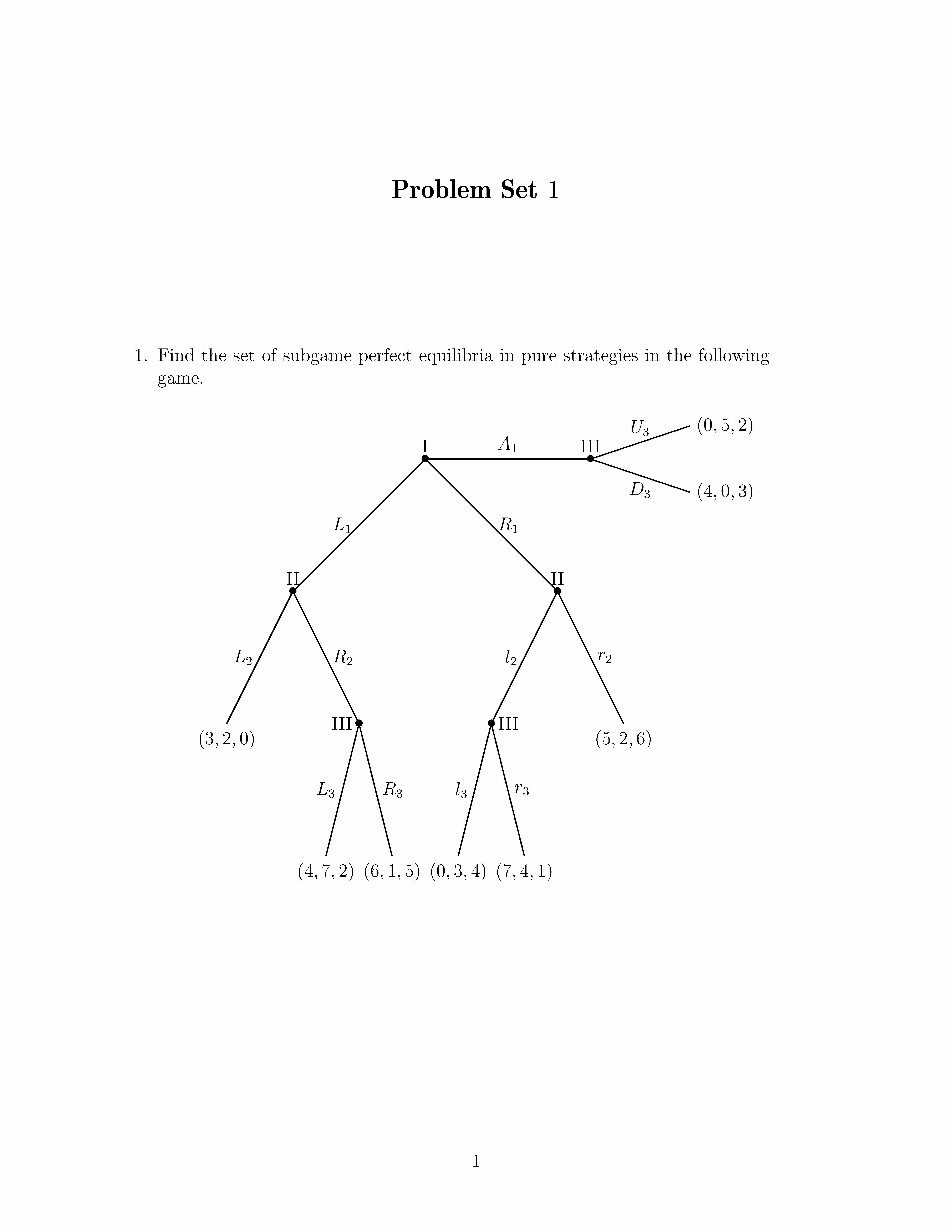 Problem Set 1 1. Find the set of subgame perfect equilibria in pur...