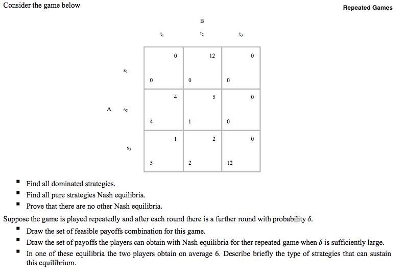 Consider the game below Repeated Games B t 12 ty 12 S; 4 5...