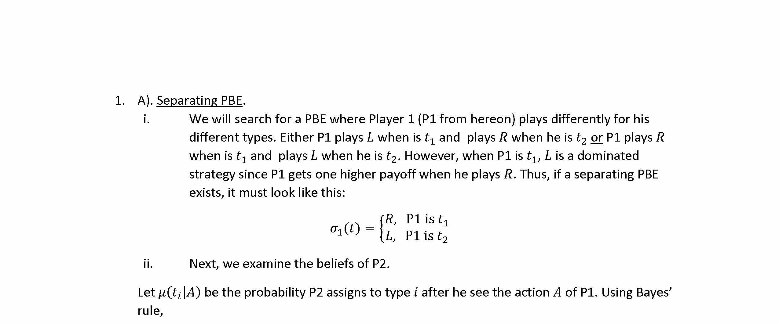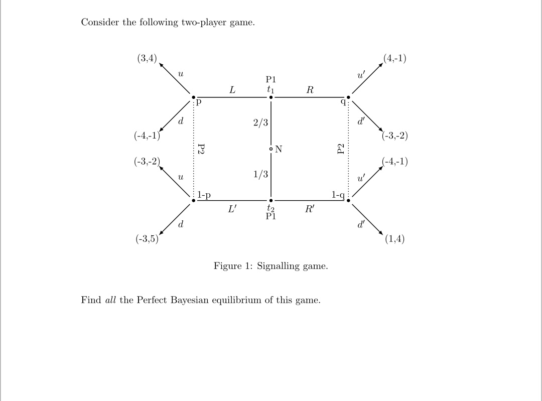 Consider the following two-player game. (3,4) (4,-1) u P1 L t...