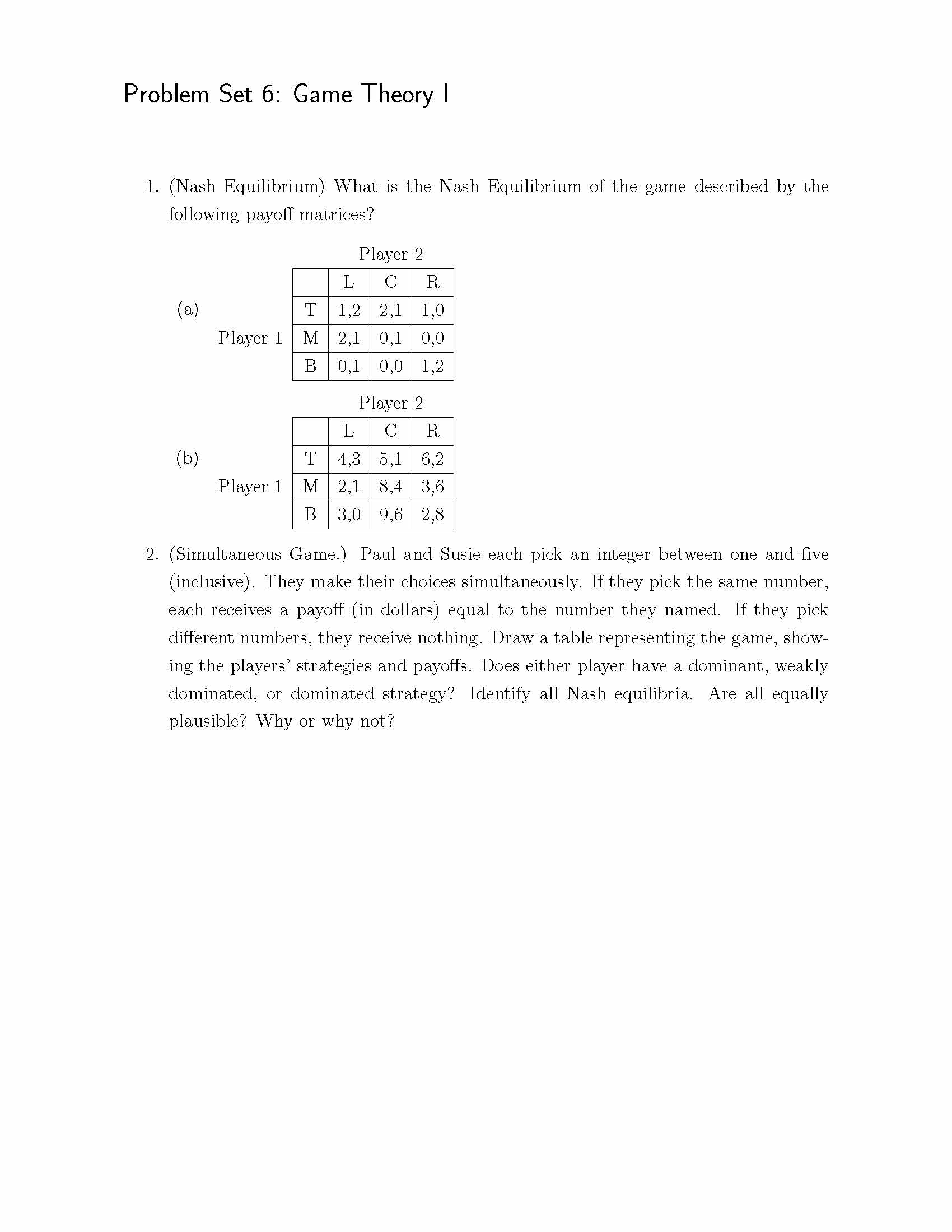 Problem Set 6: Game Theory I 1. (Nash Equilibrium) What is the Nas...