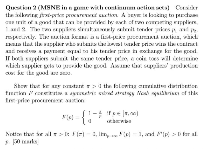 Question 2 (MSNE in a game with continuum action sets) Consider th...