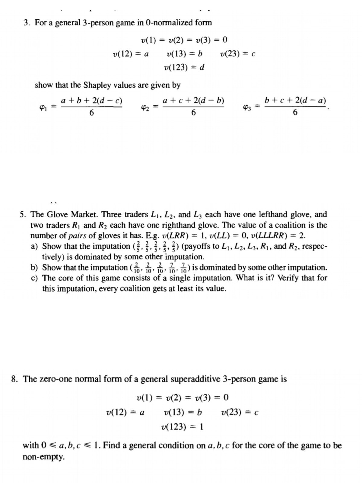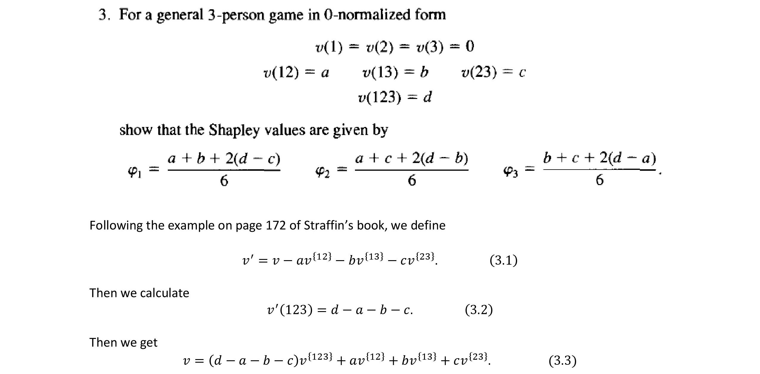 3. For a general 3-person game in 0-normalized form v(1) = v(2) = ...