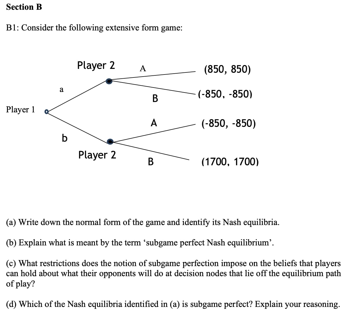 Section B B1: Consider the following extensive form game: Player...