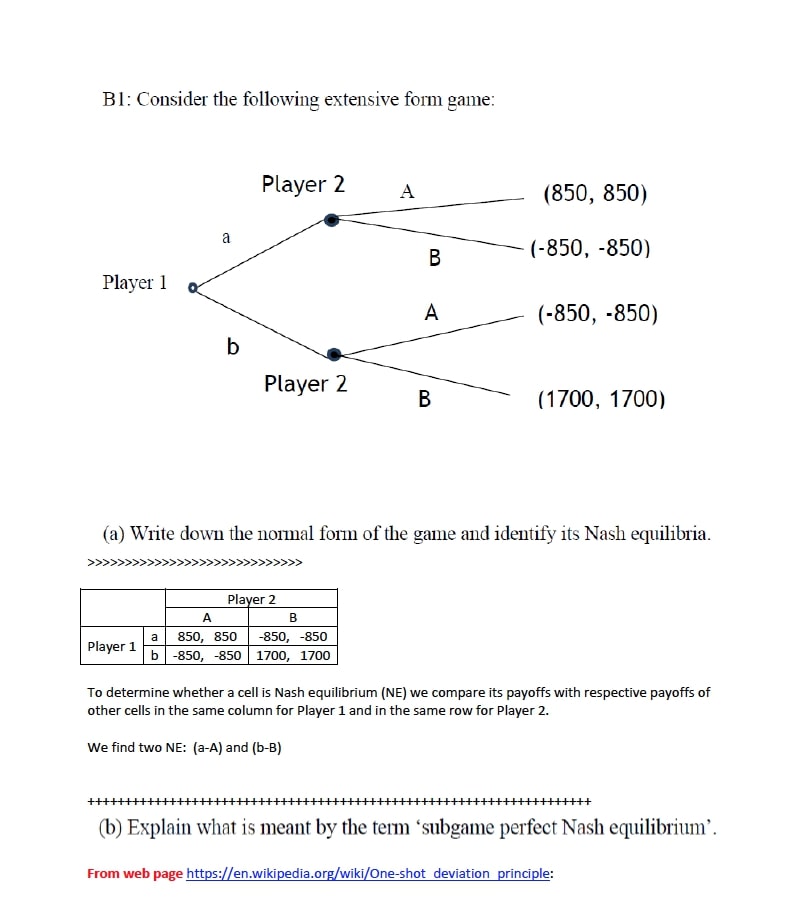 Section B B1: Consider the following extensive form game: Player ...
