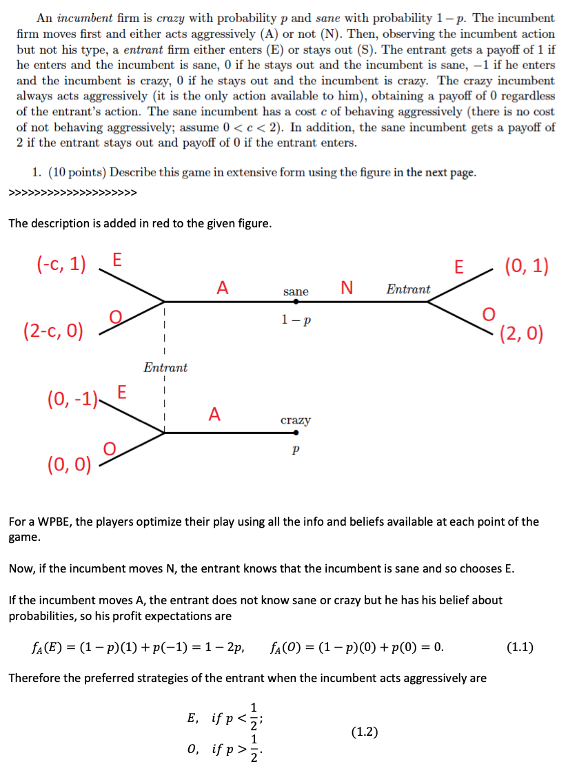 An incumbent firm is crazy with probability p and sane with probabi...