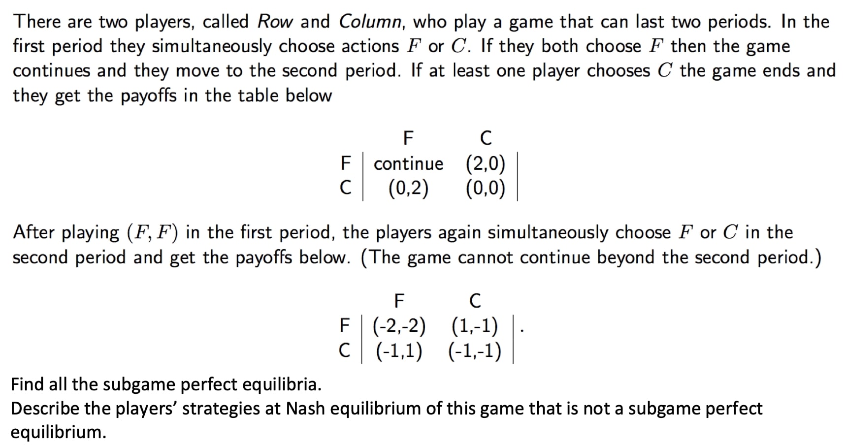 There are two players, called Row and Column, who play a game that...