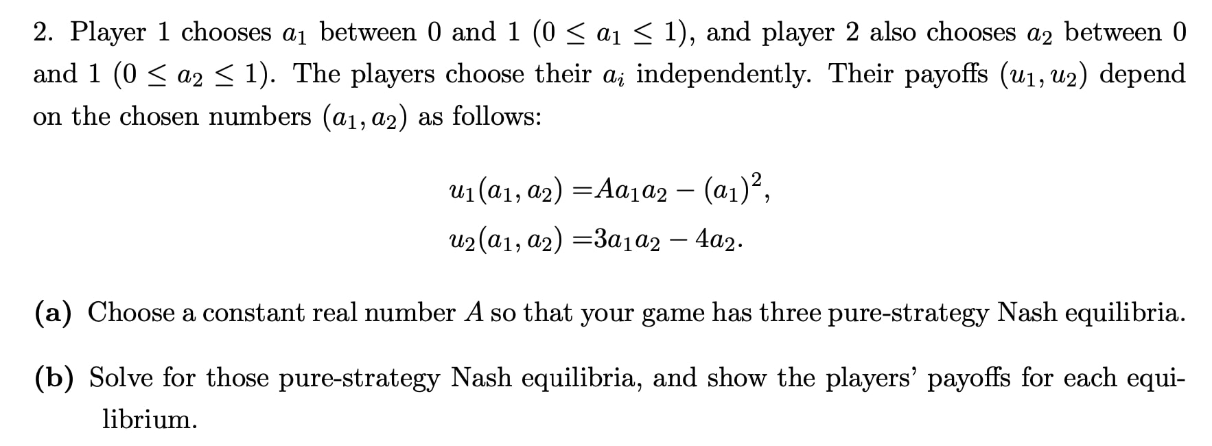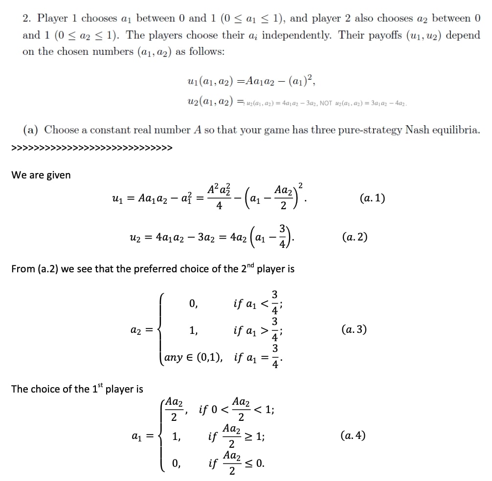 2. Player 1 chooses a1 between 0 and 1 (0 a1 1), and player 2 also...