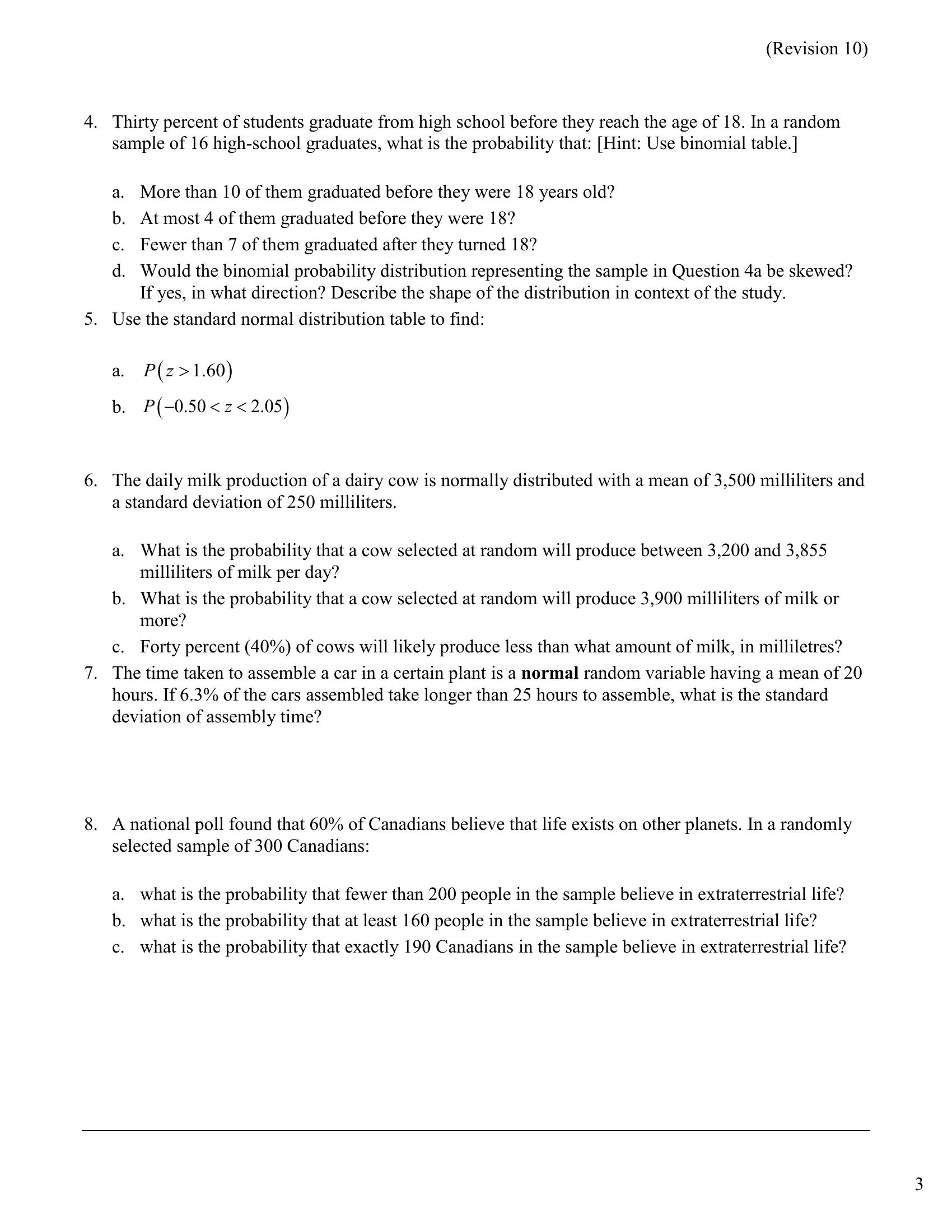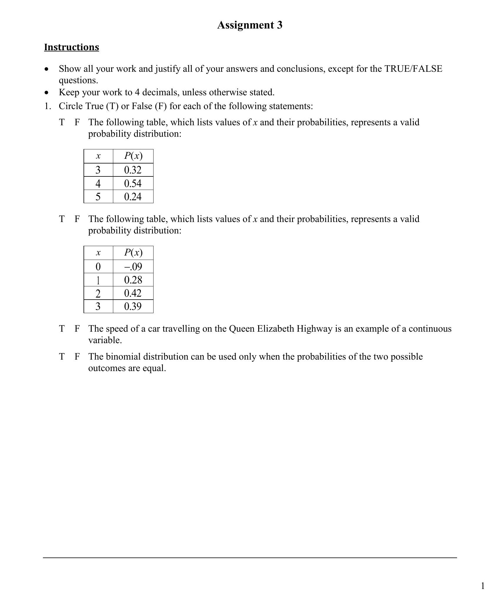 Assignment 3 Instructions Show all your work and justify all of y...