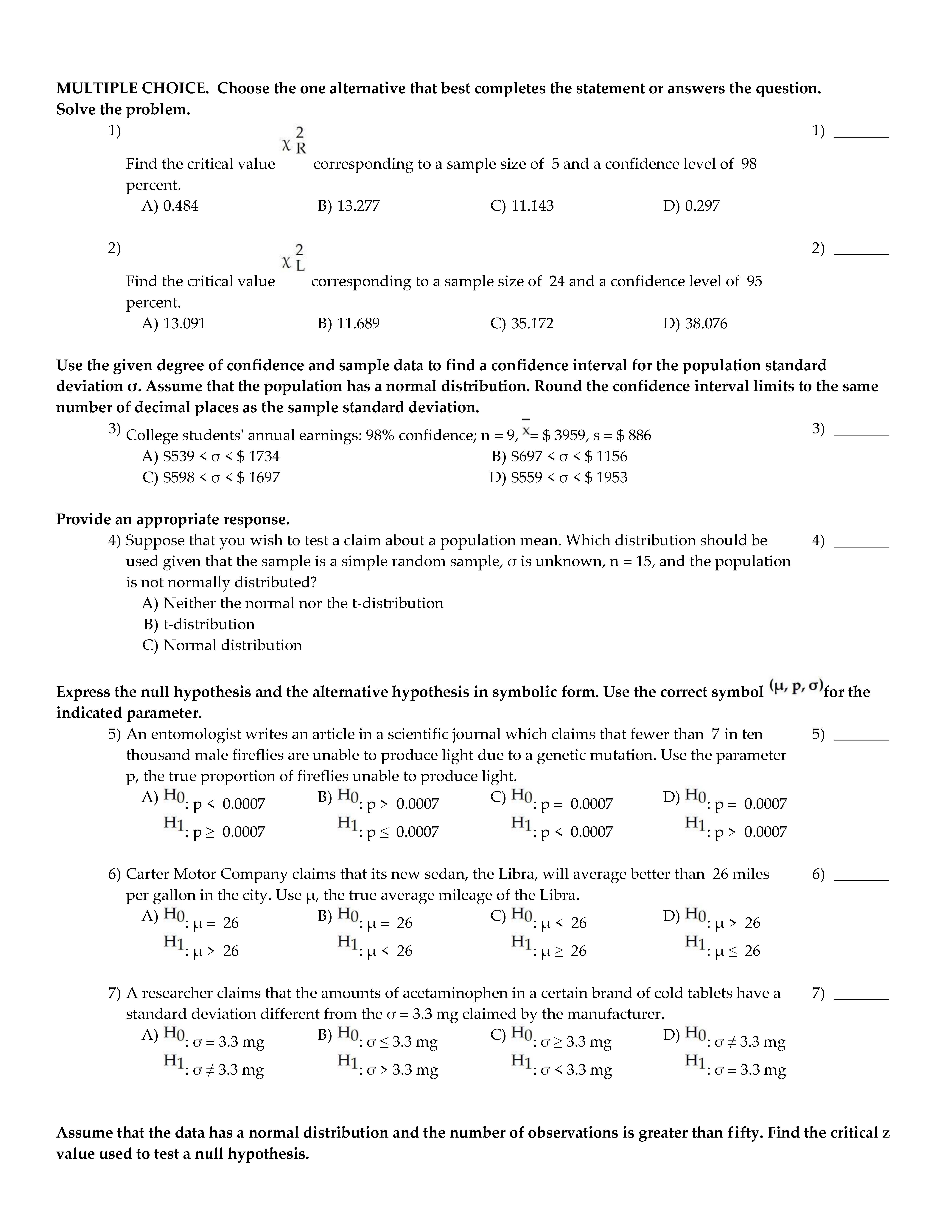 MULTIPLE CHOICE. Choose the one alternative that best completes the...