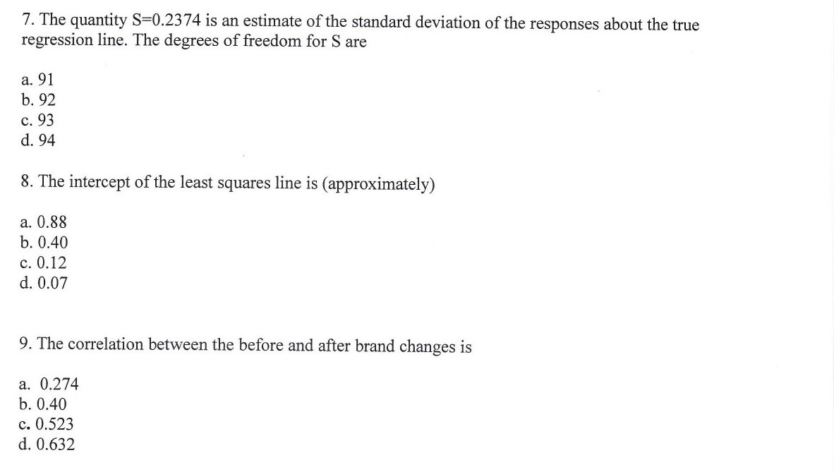 7. The quantity S=0.2374 is an estimate of the standard deviation o...
