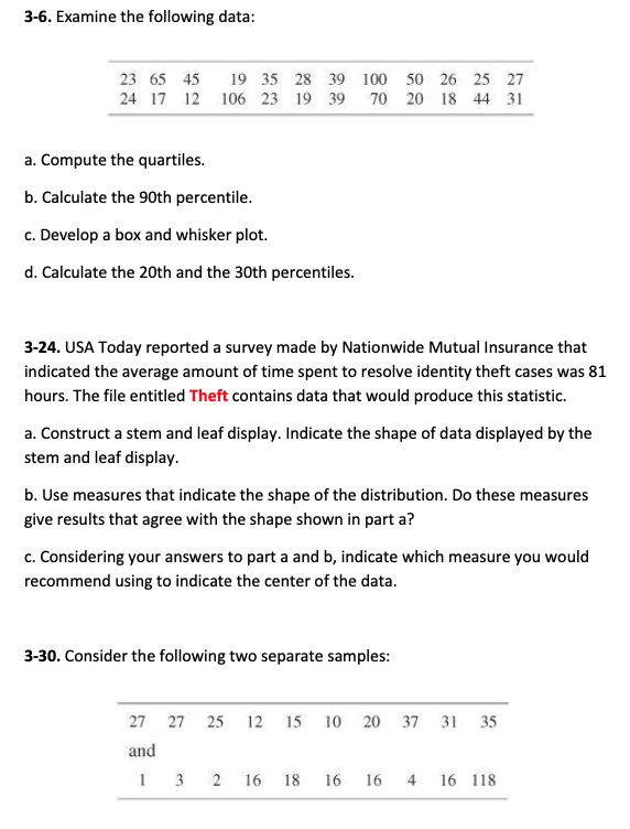 3-6. Examine the following data: 23 65 45 19 35 28 39 100...