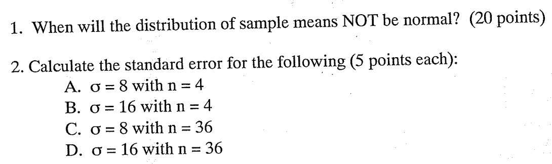 1. When will the distribution of sample means NOT be normal? (20 po...