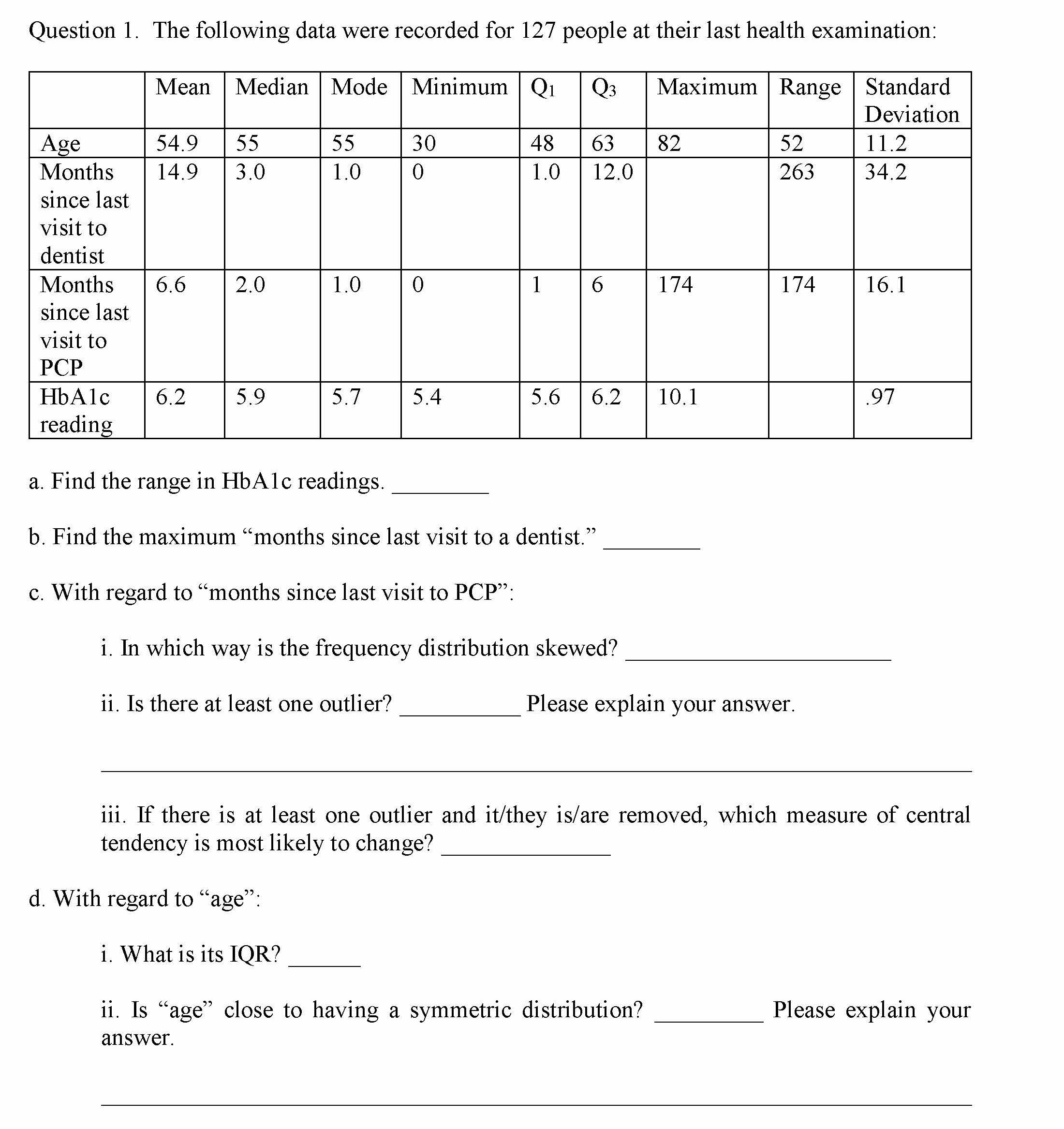 Question 1. The following data were recorded for 127 people at thei...