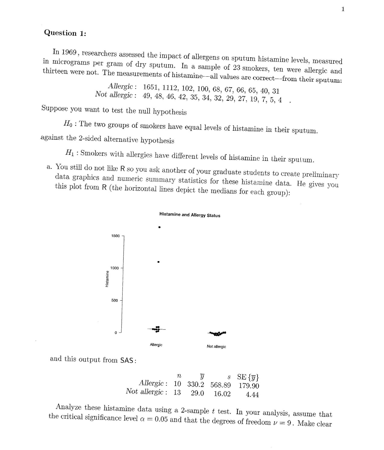 1 Question 1: In 1969, , researchers assessed the impact of aller...