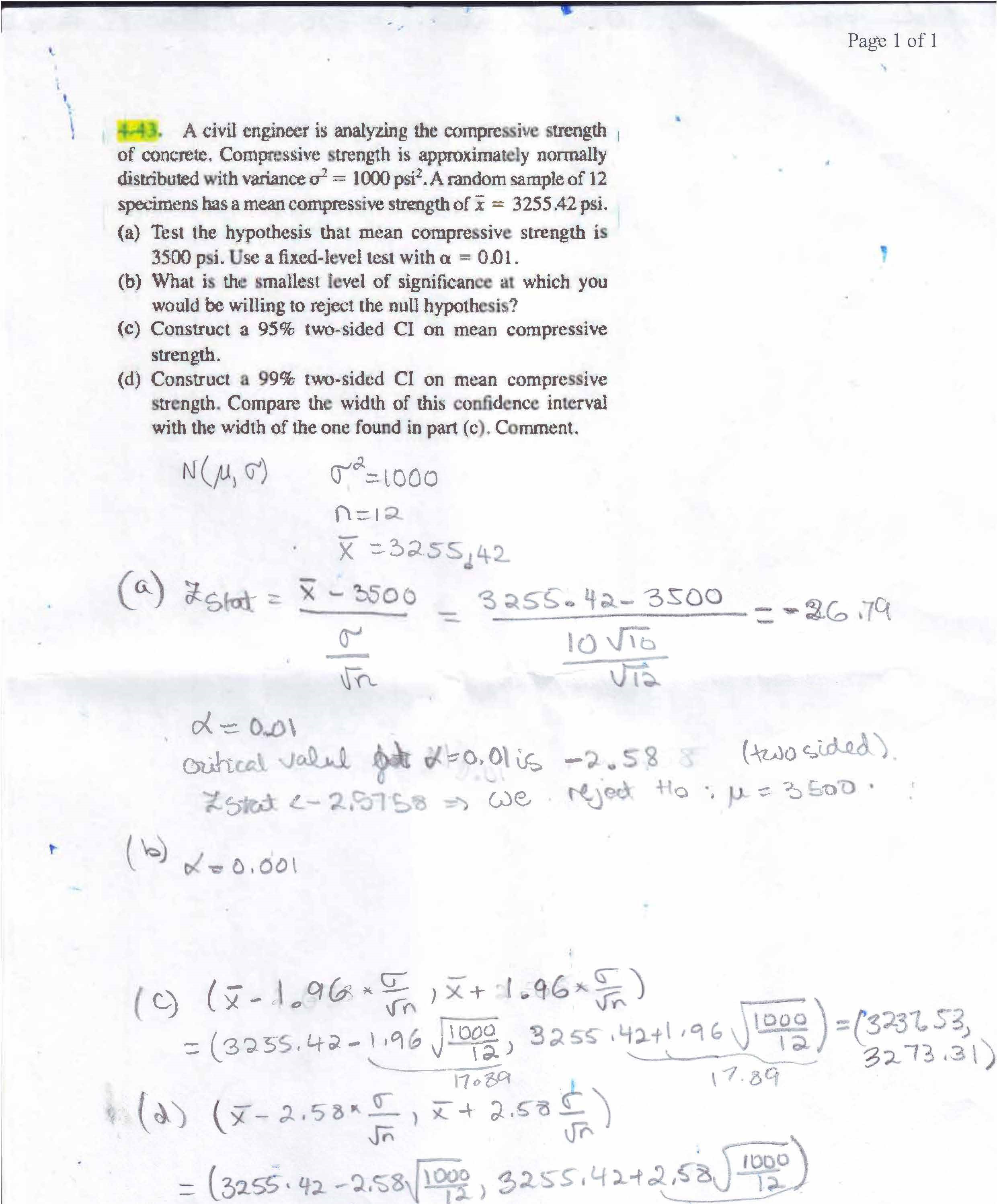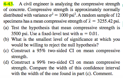 4-43. A civil engineer is analyzing the compressive strength of co...