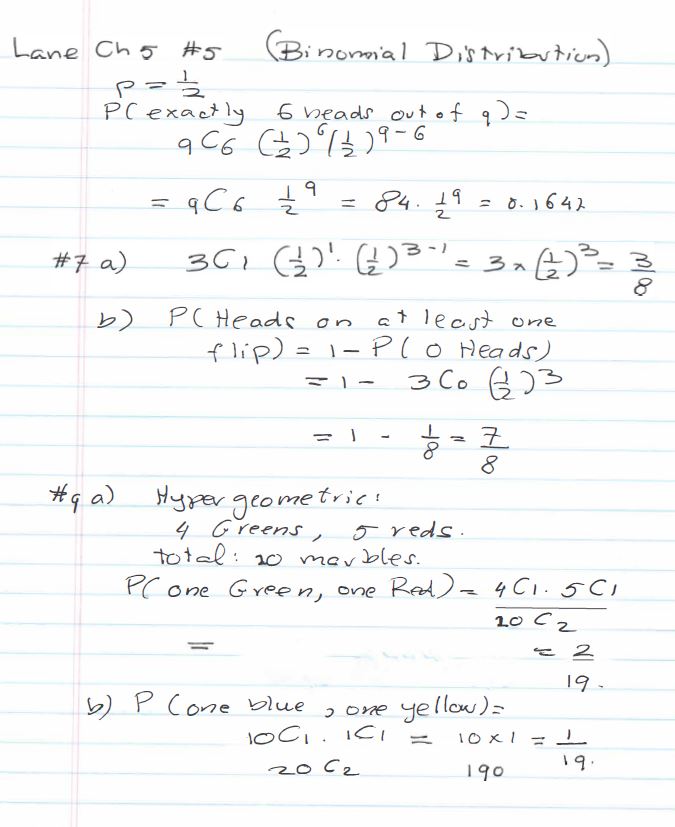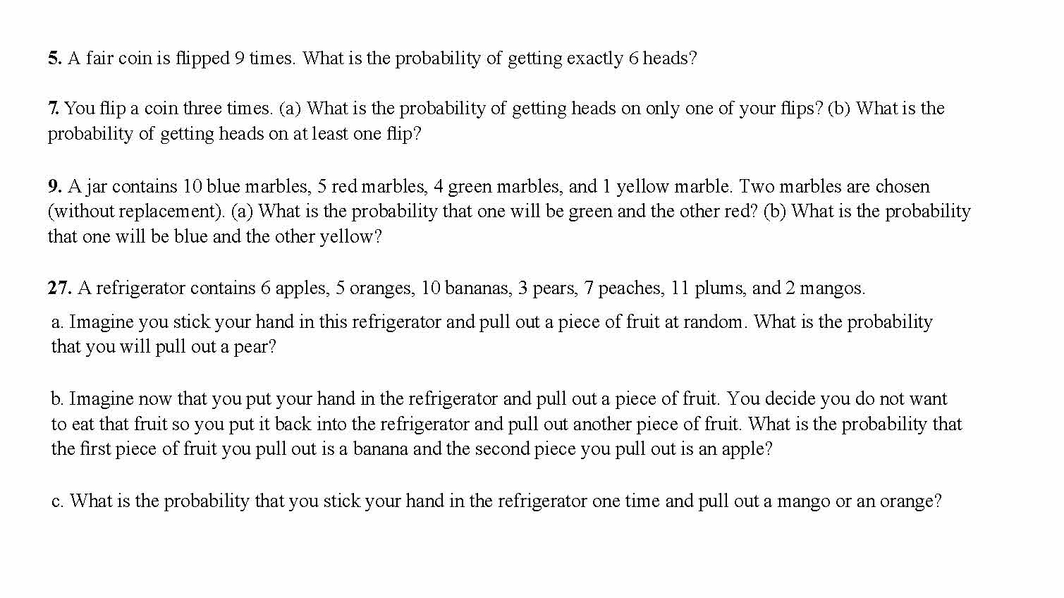 5. A fair coin is flipped 9 times. What is the probability of getti...