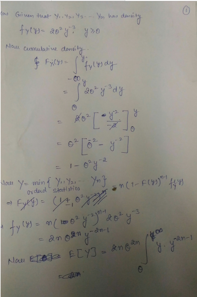 (1) Suppose that Y 1 , ,Y n n is a random sample where the dens...