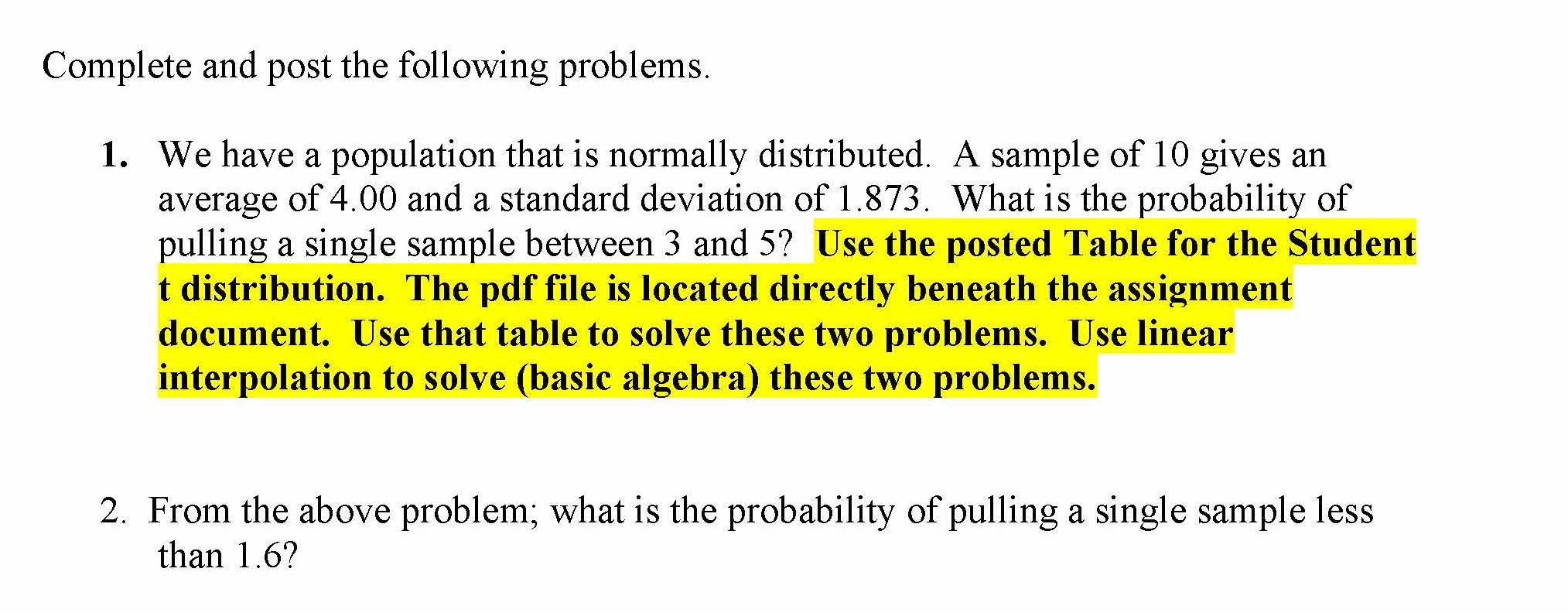 Complete and post the following problems. 1. We have a population ...