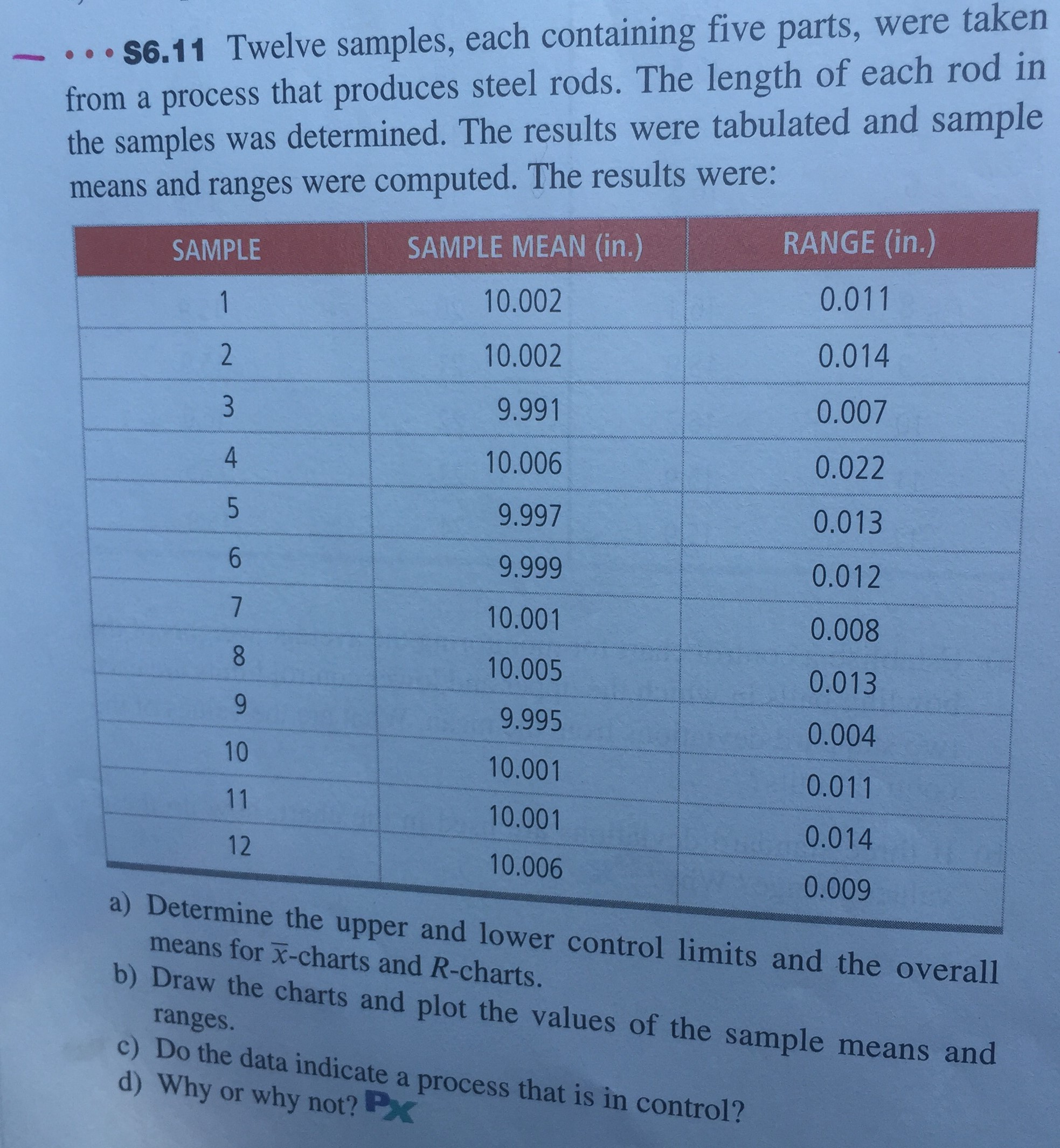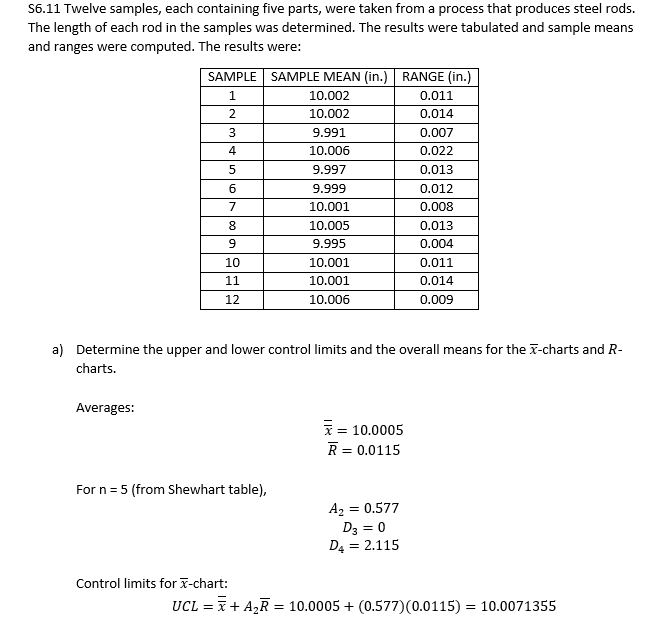 S6.11 Twelve samples, each containing five parts, were taken - fr...