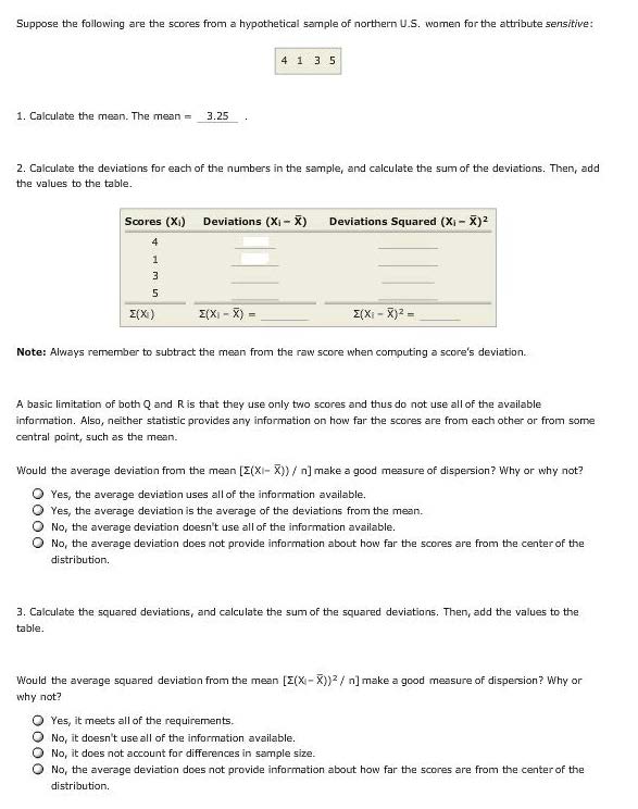 Suppose the following are the scores from a hypothetical sample of ...