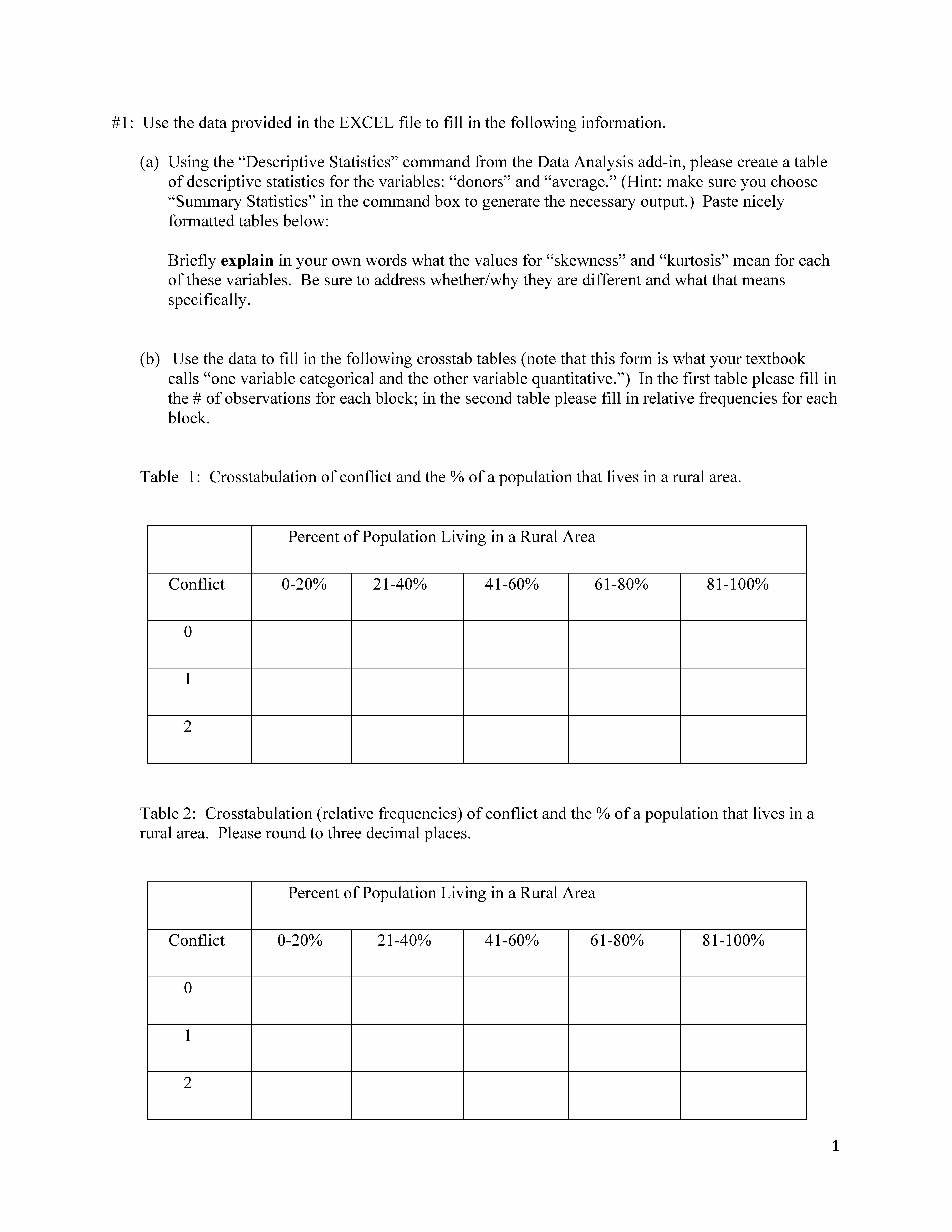 #1: Use the data provided in the EXCEI file tofillin the following...