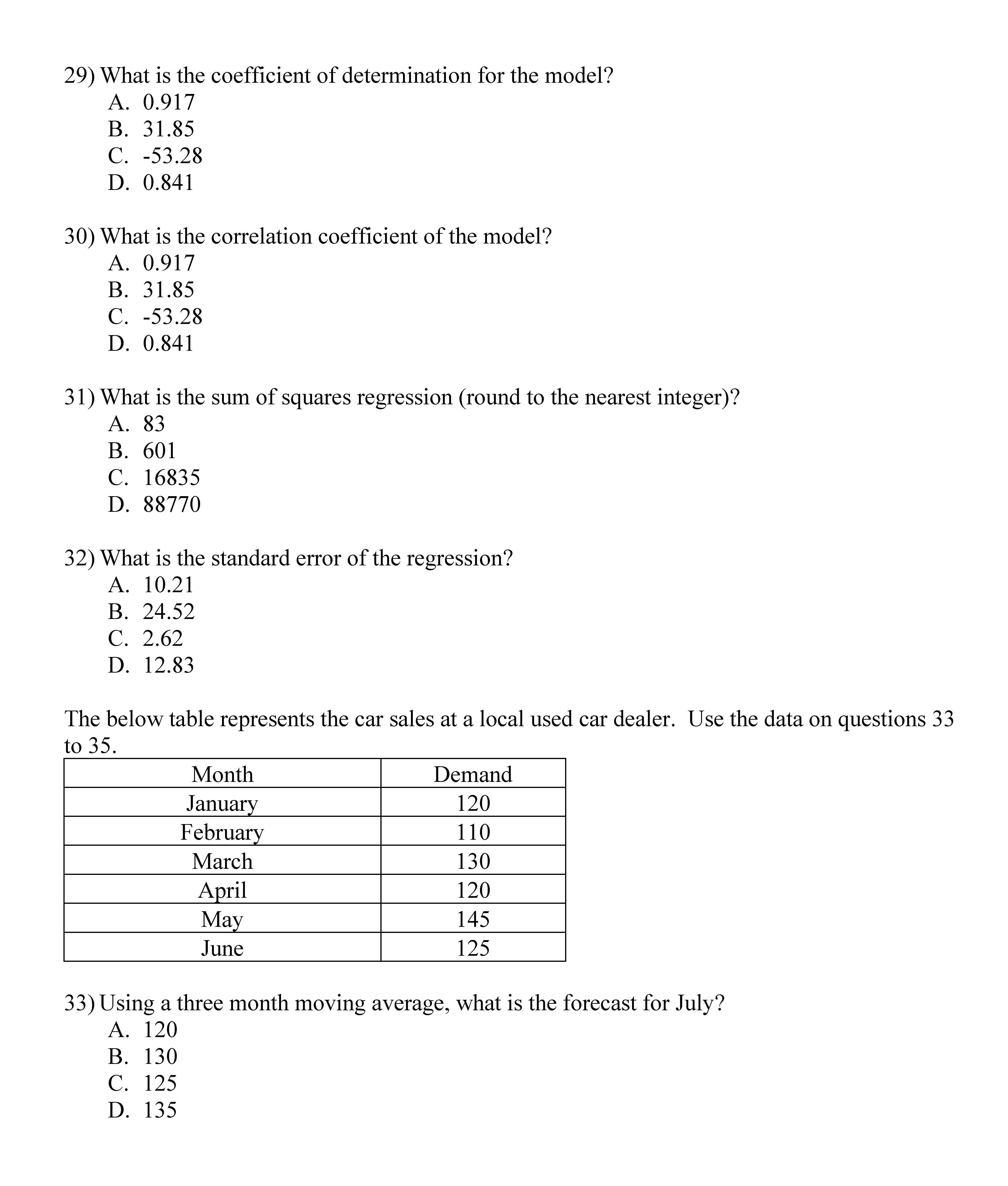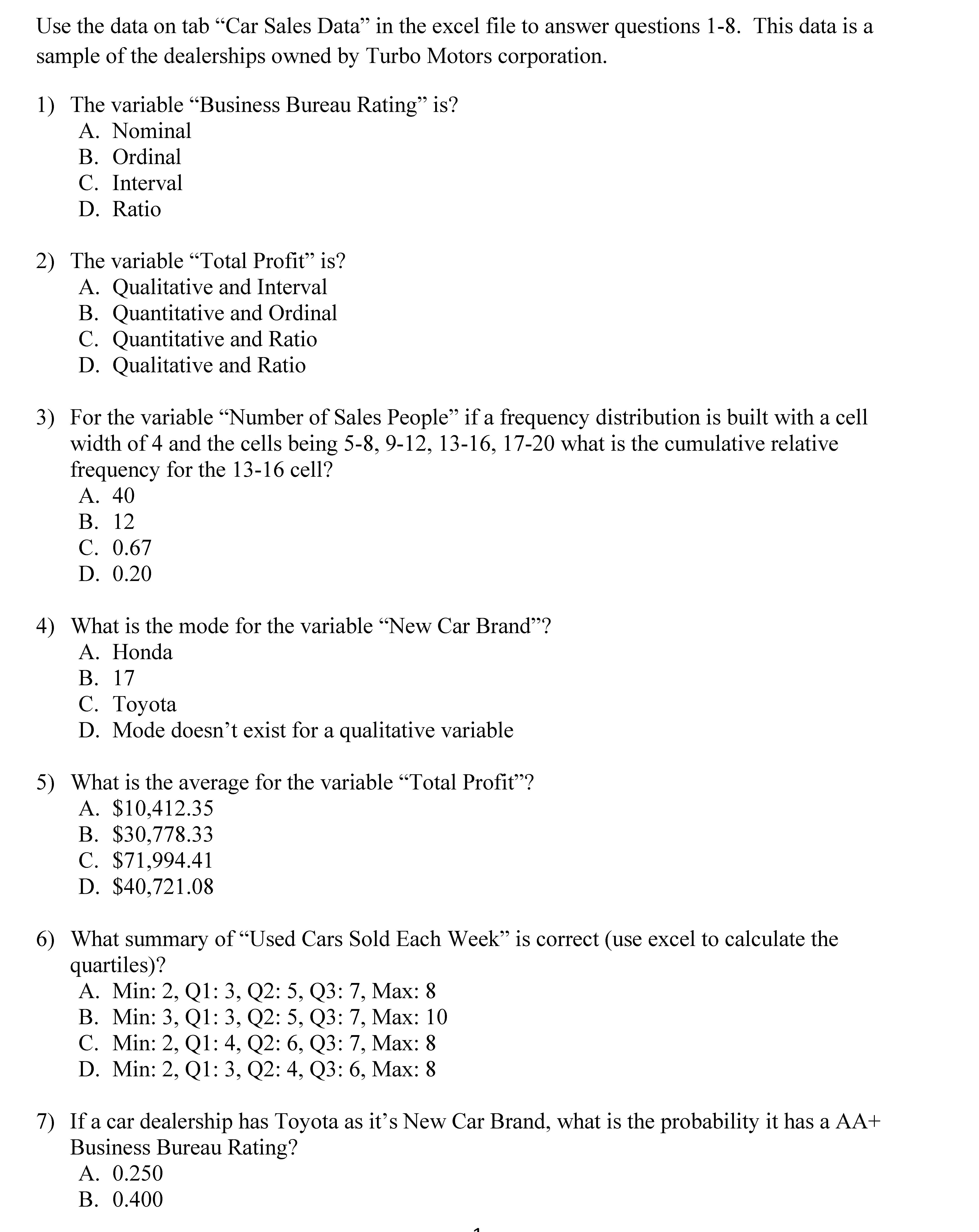 Use the data on tab “Car Sales Data†in the excel file ...
