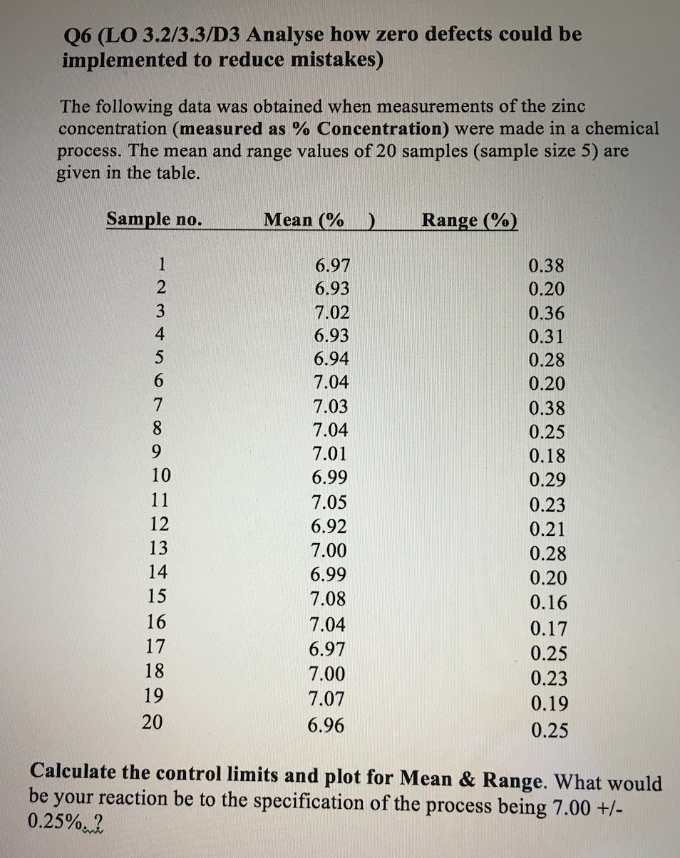 Q6 (LO 3.2/3.3/D3 Analyse how zero defects could be implemented to...