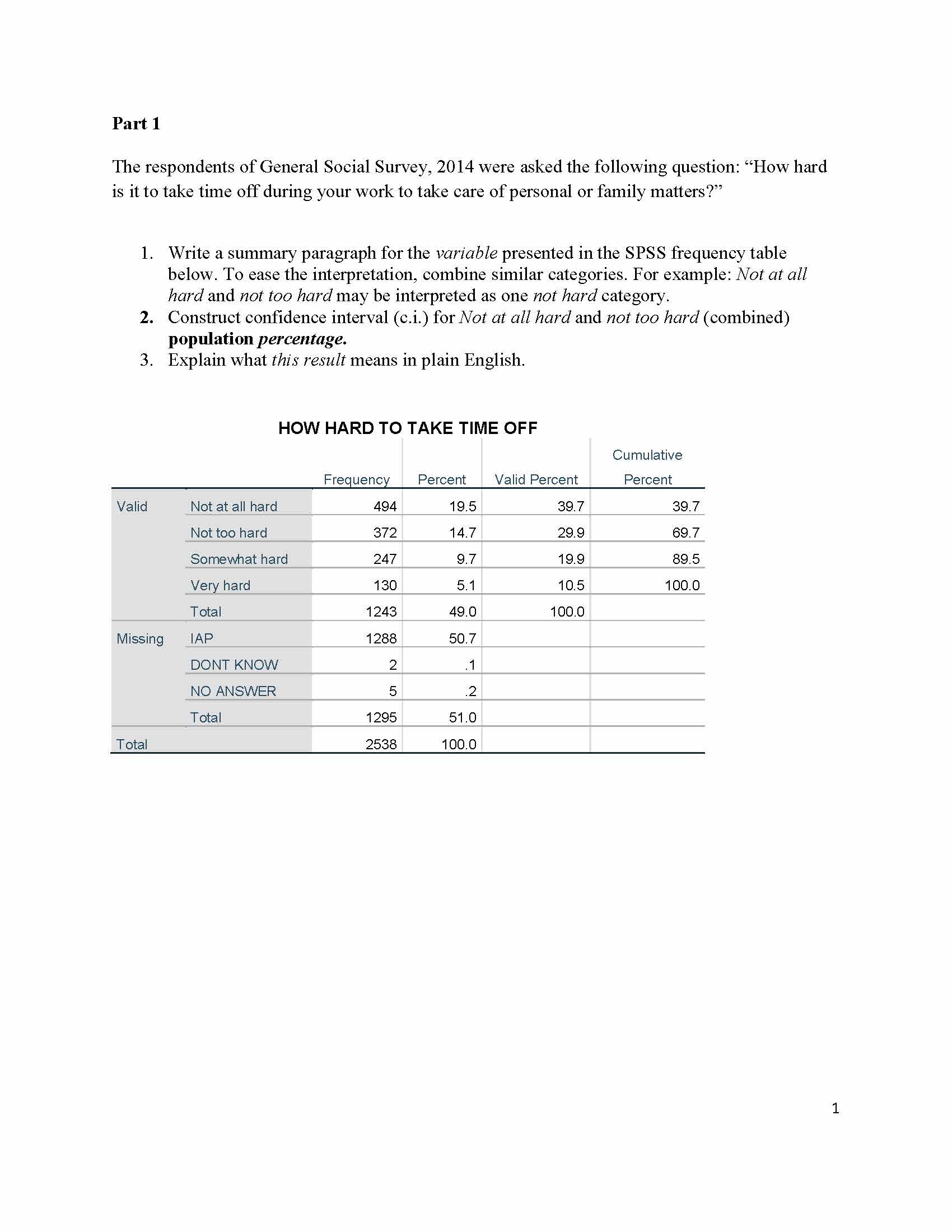 Part 1 The respondents of General Social Survey, 2014 were asked t...