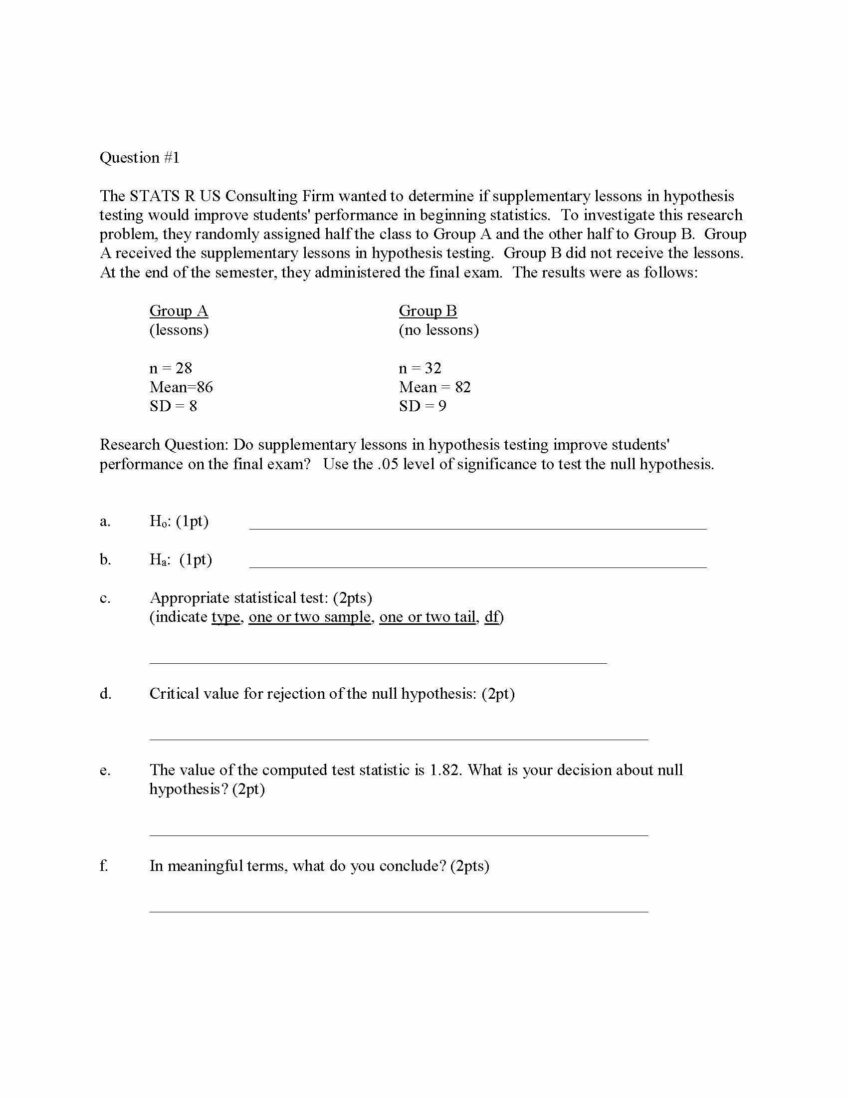 Question #1 The STATS R US Consulting Firm wanted to determine if ...