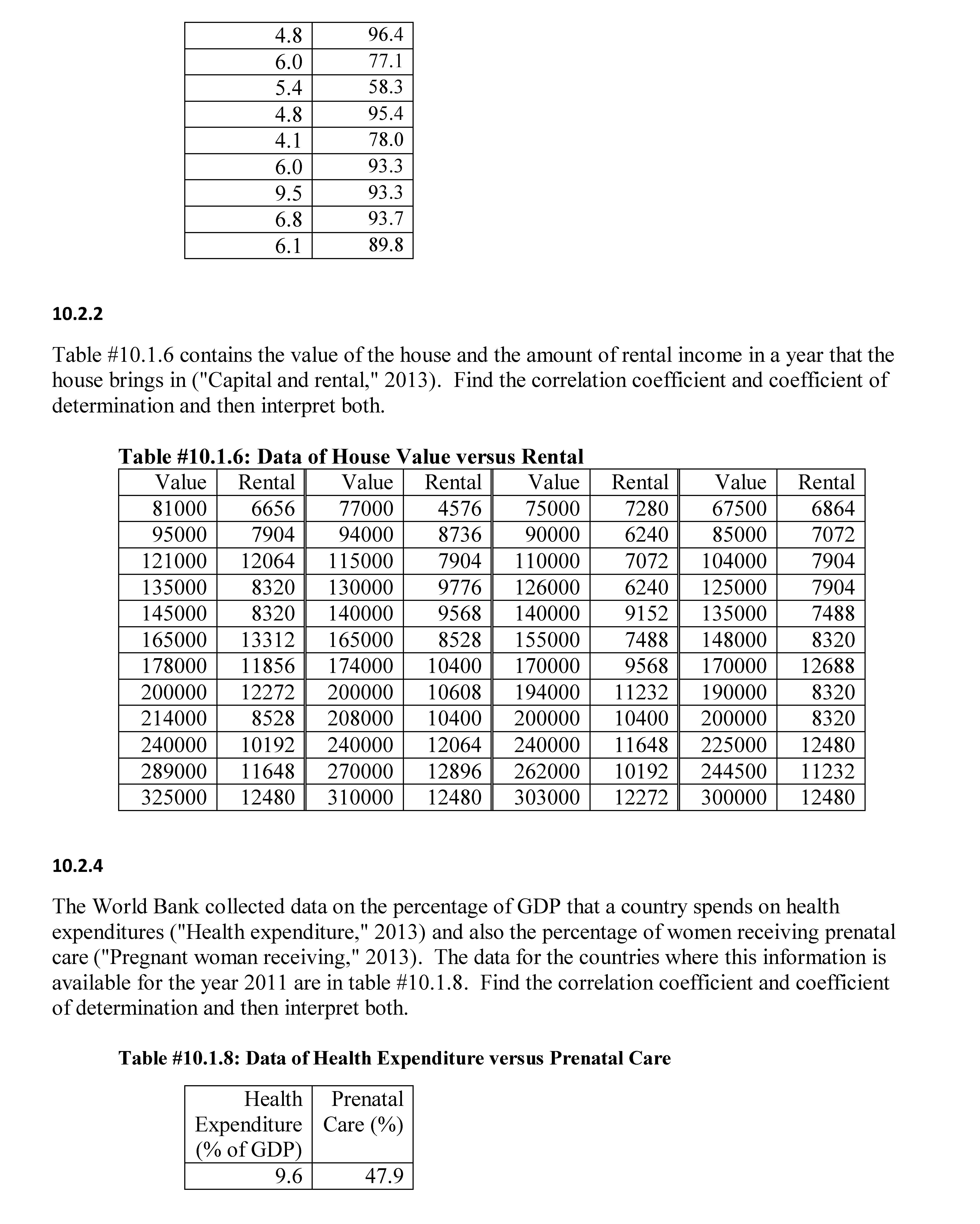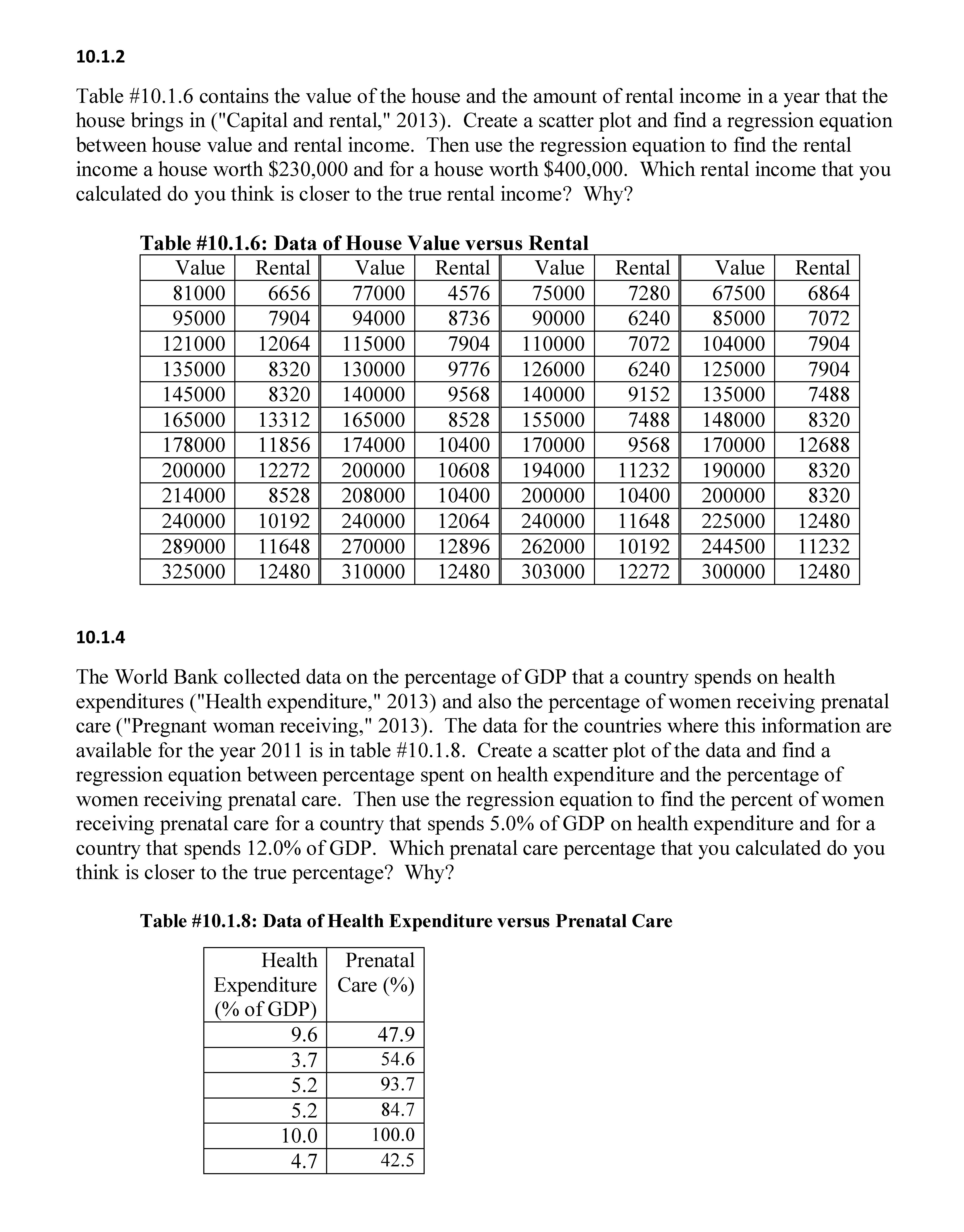 10.1.2 Table #10.1.6 contains the value of the house and the amoun...