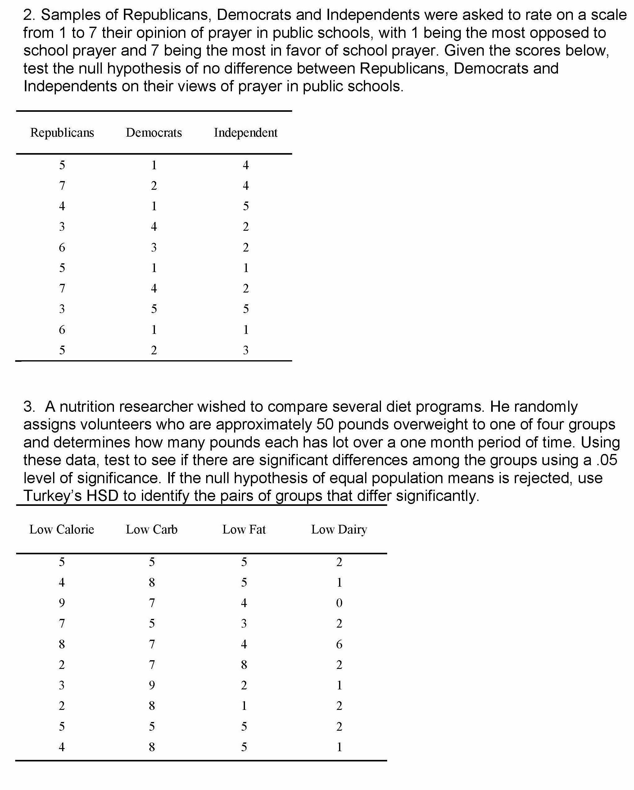 2. Samples of Republicans, Democrats and Independents were asked to...