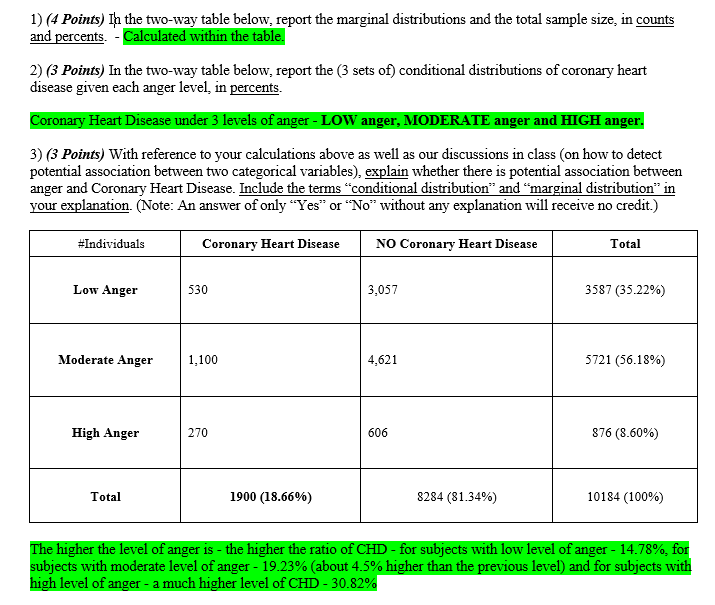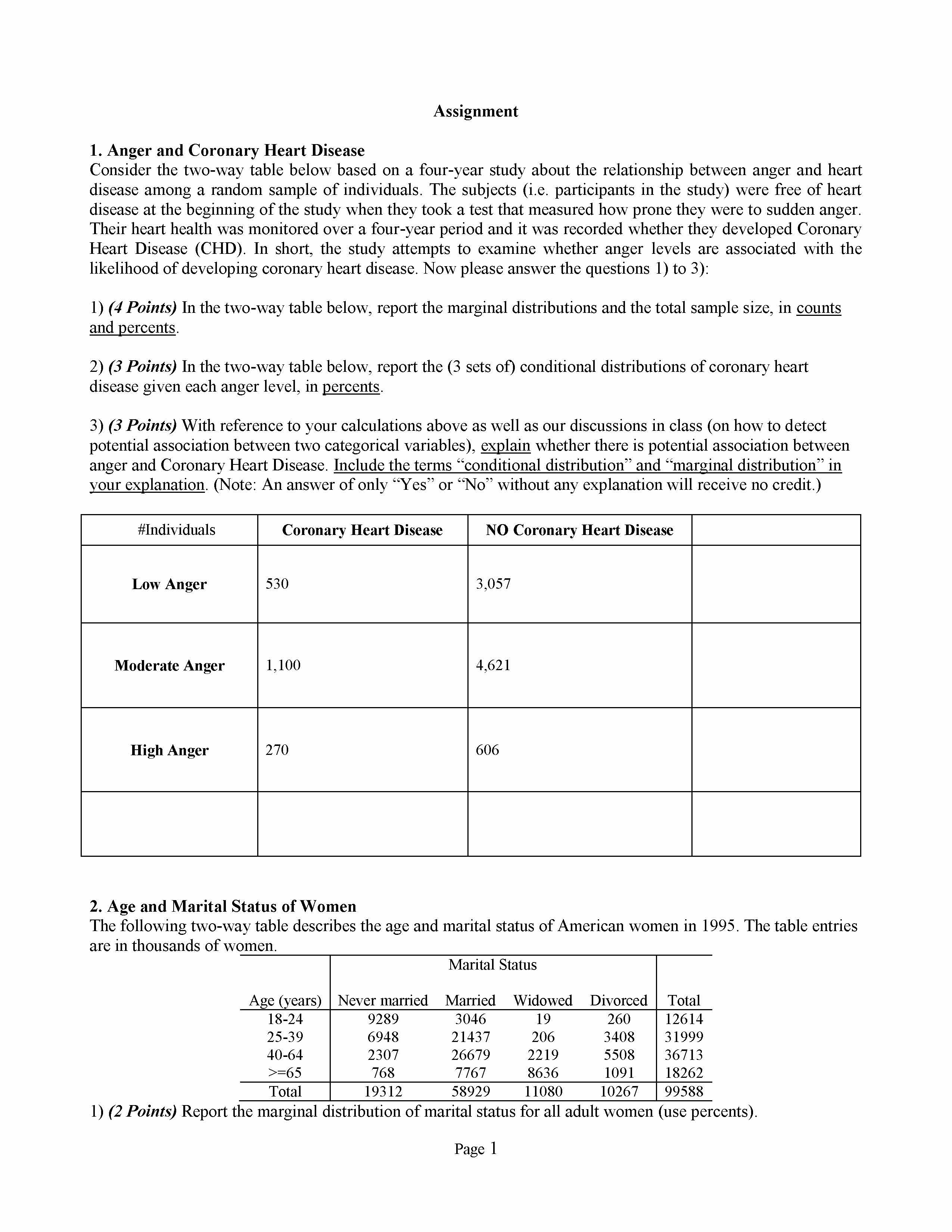 Assignment 1. Anger and Coronary Heart Disease Consider the two-w...