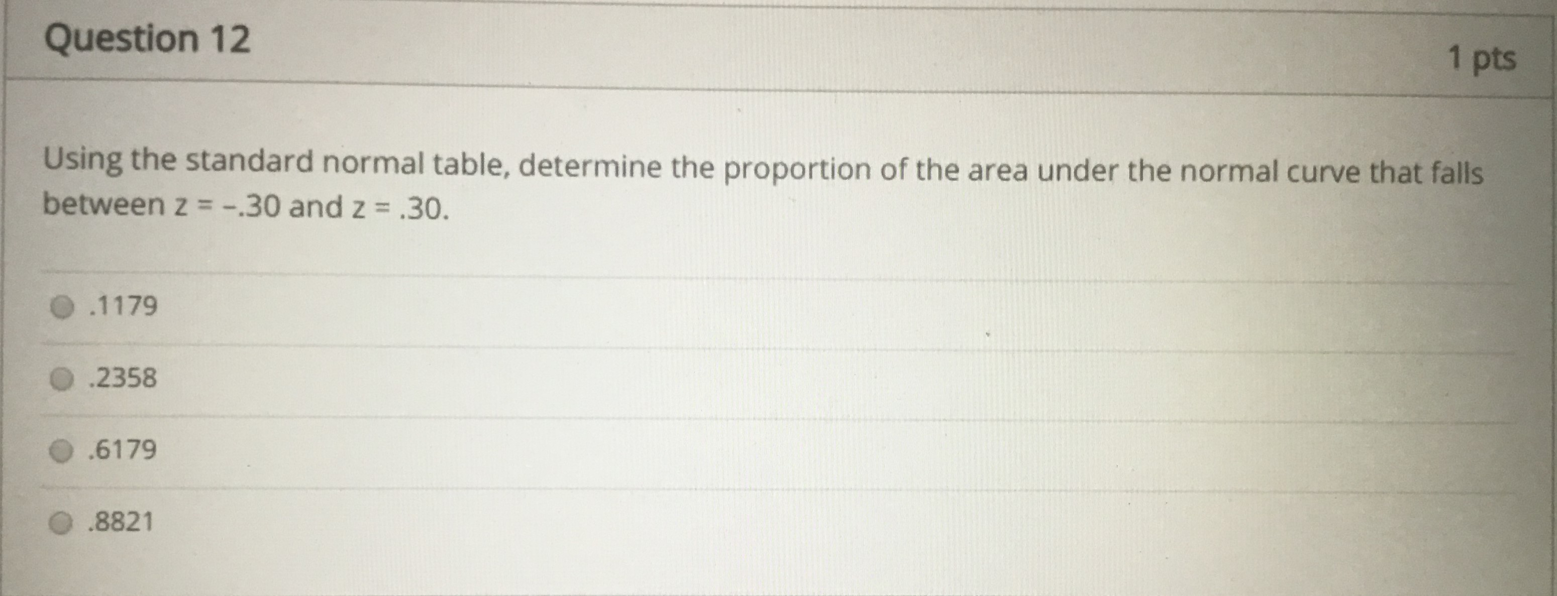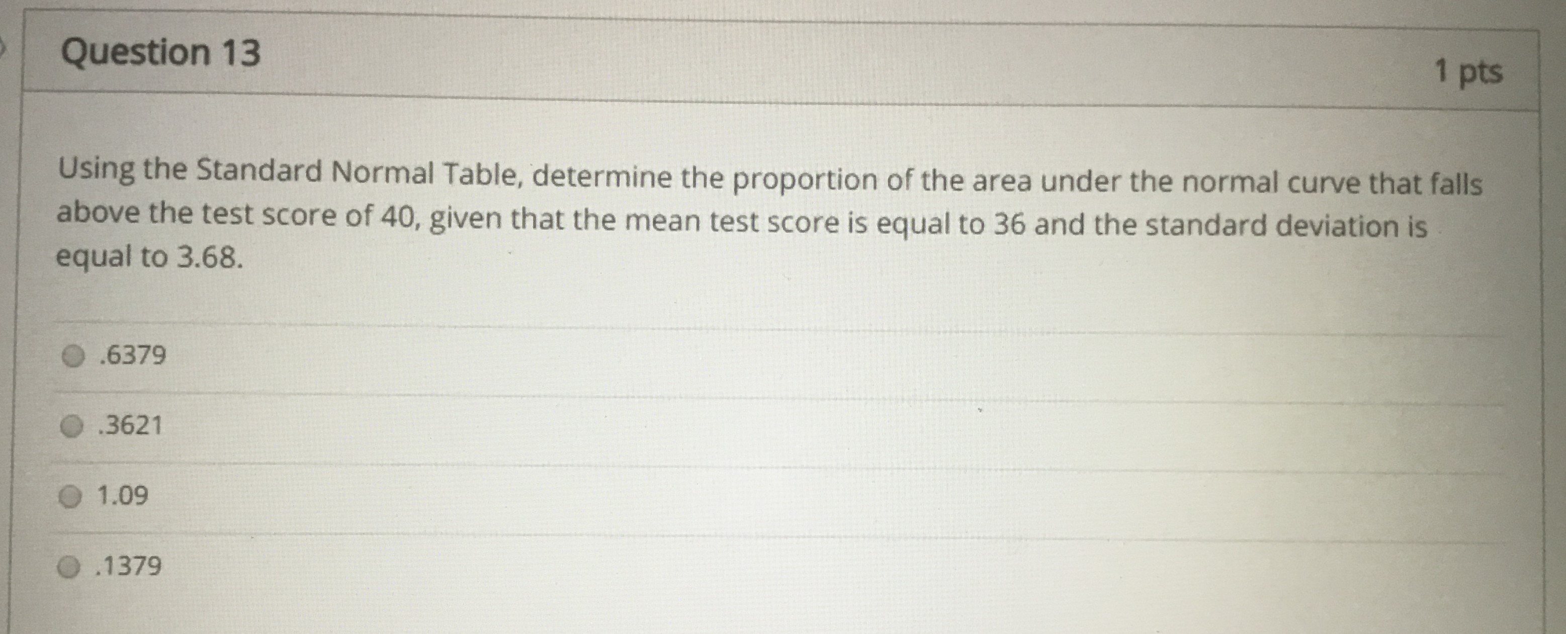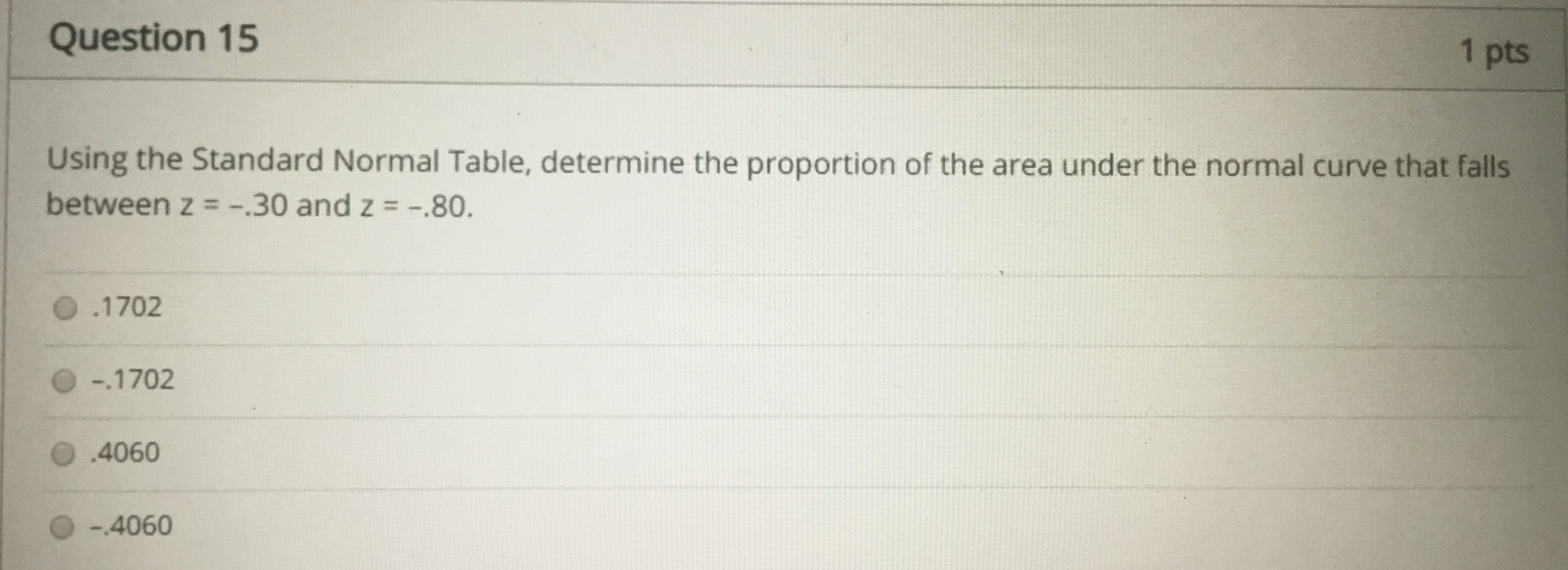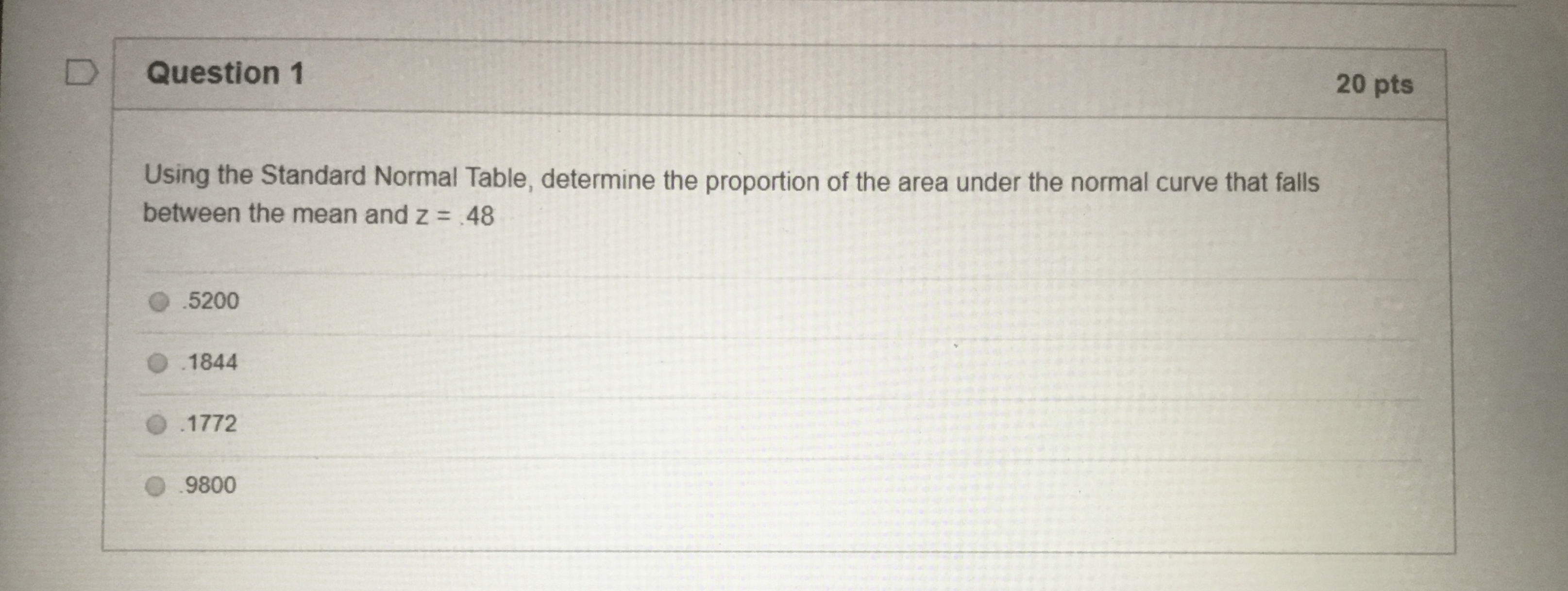 Question 1 20 pts Using the Standard Normal Table, determine the ...