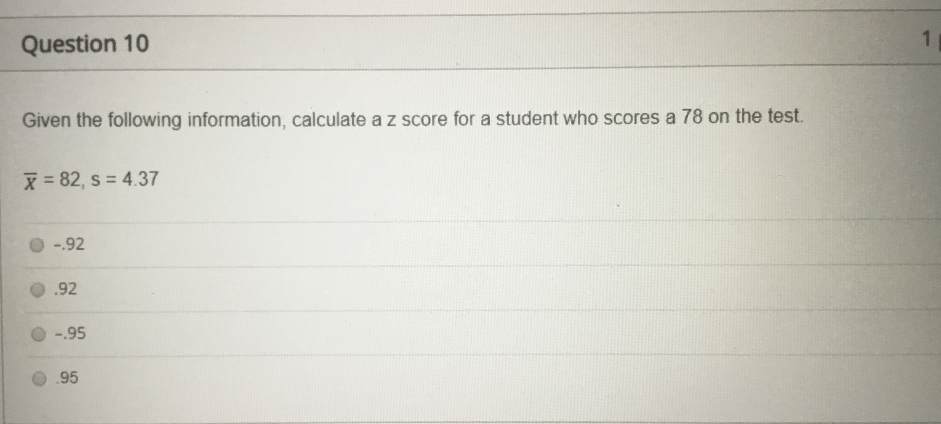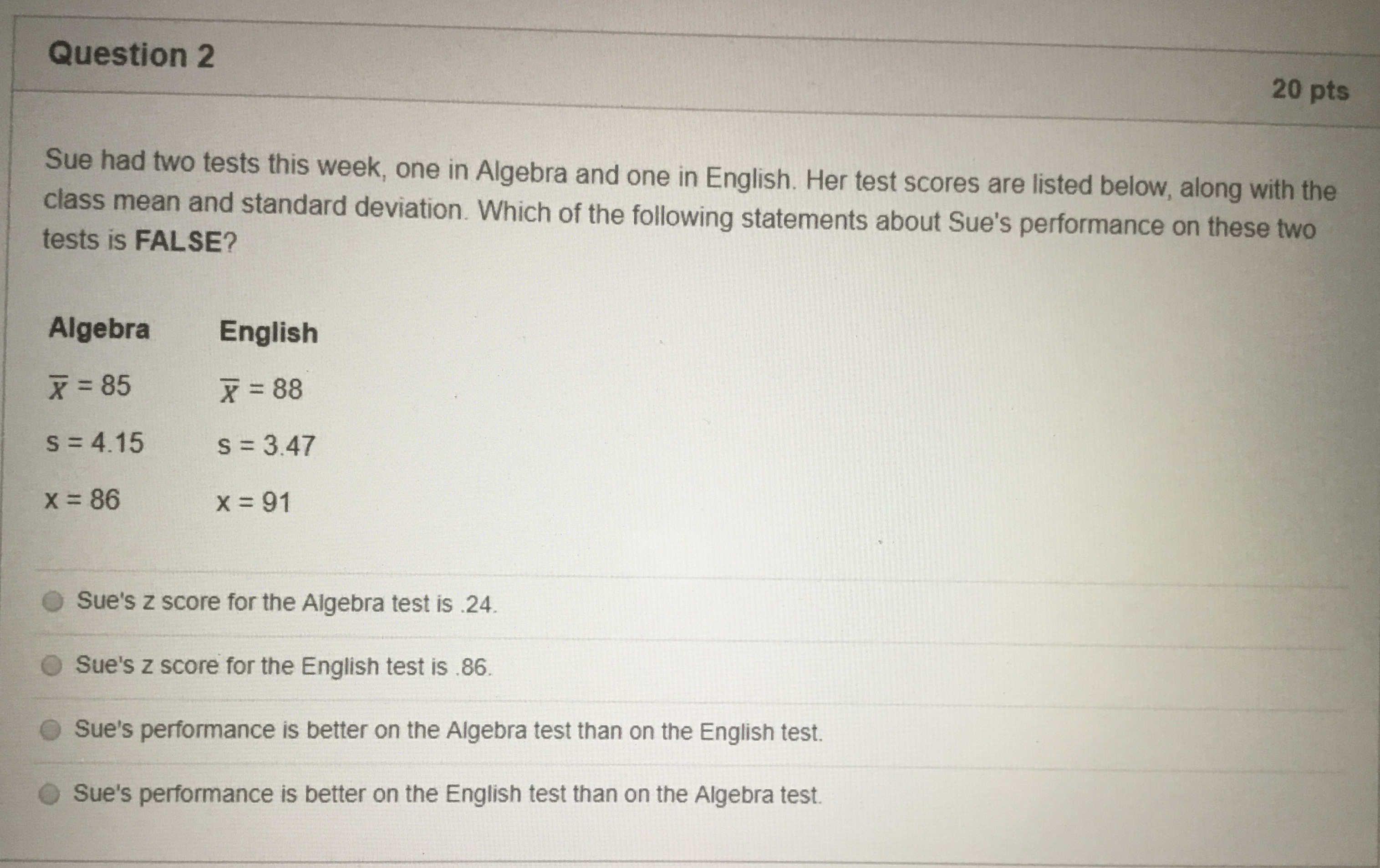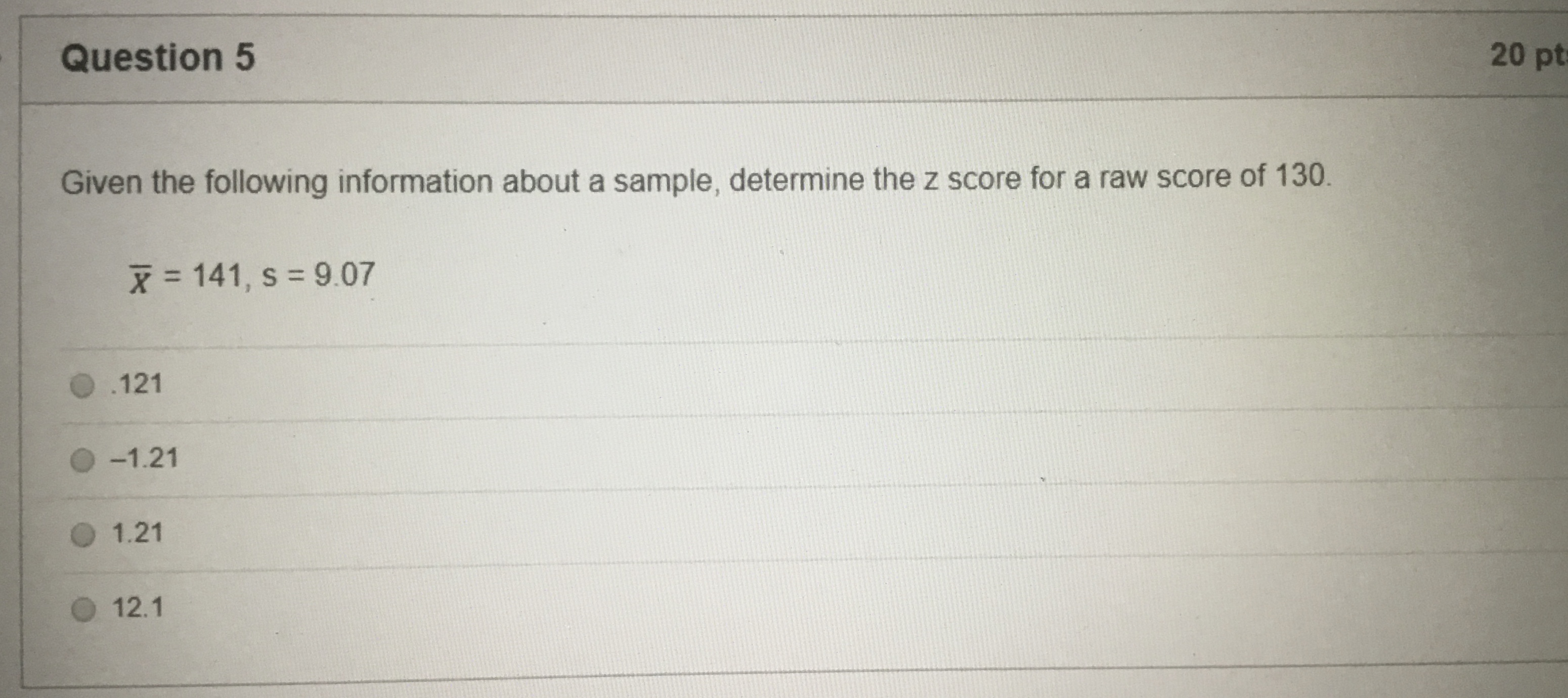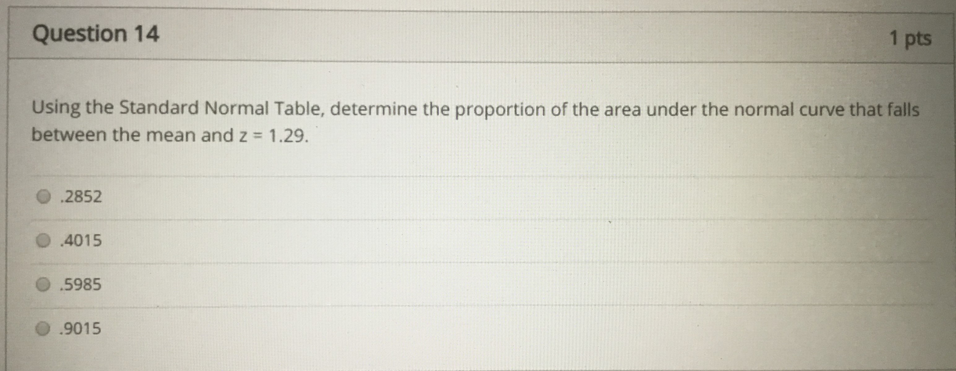 Question 1 20 pts Using the Standard Normal Table, determine the ...