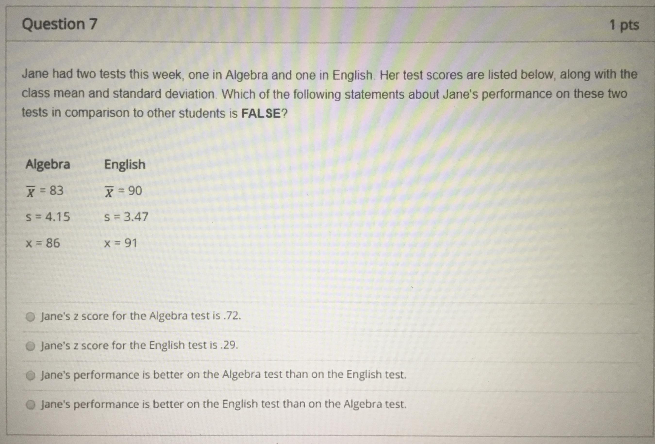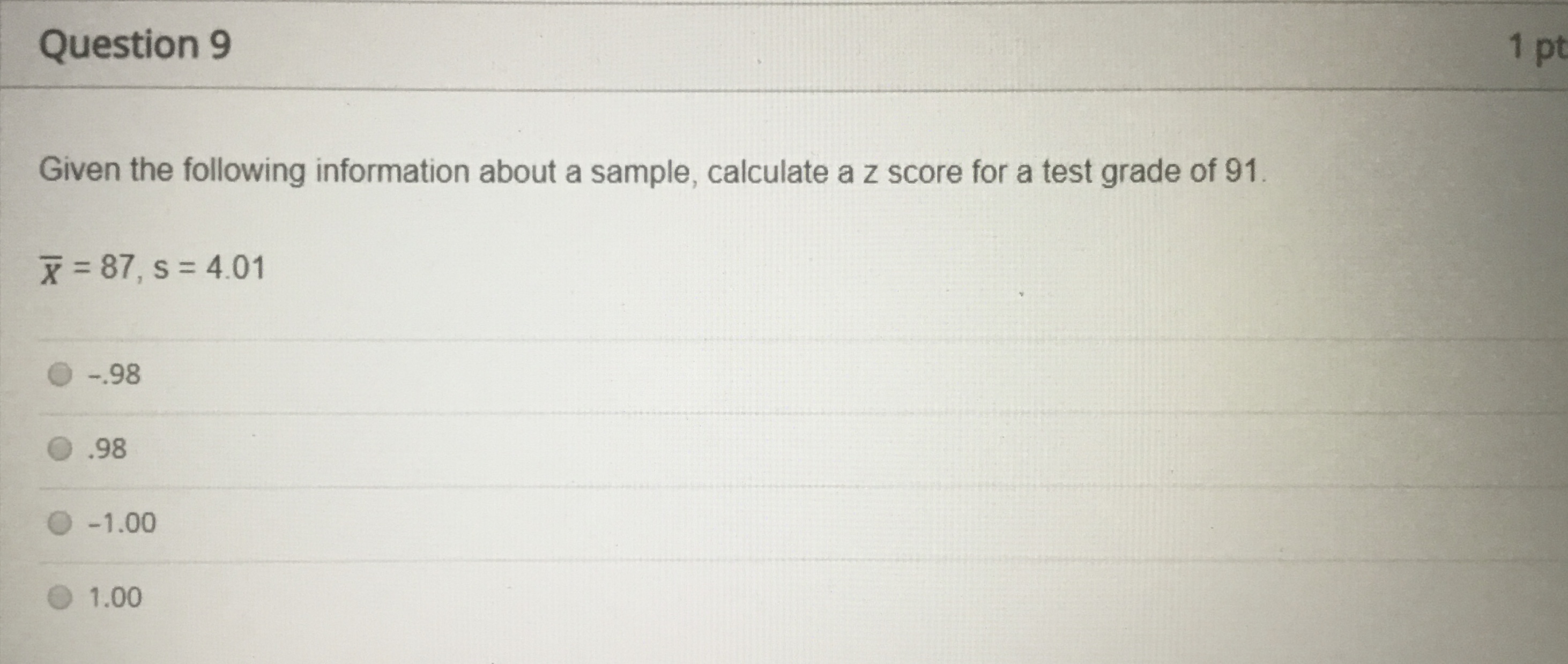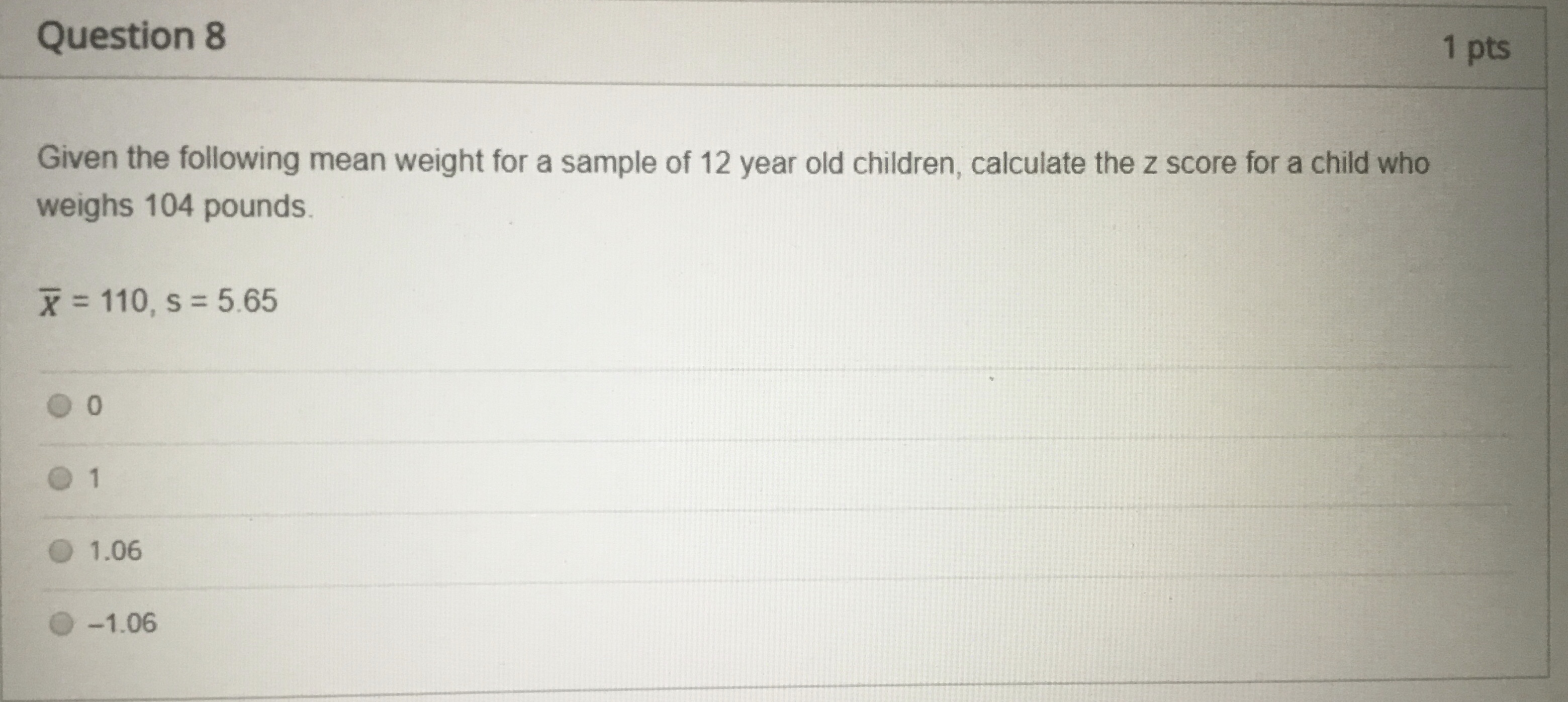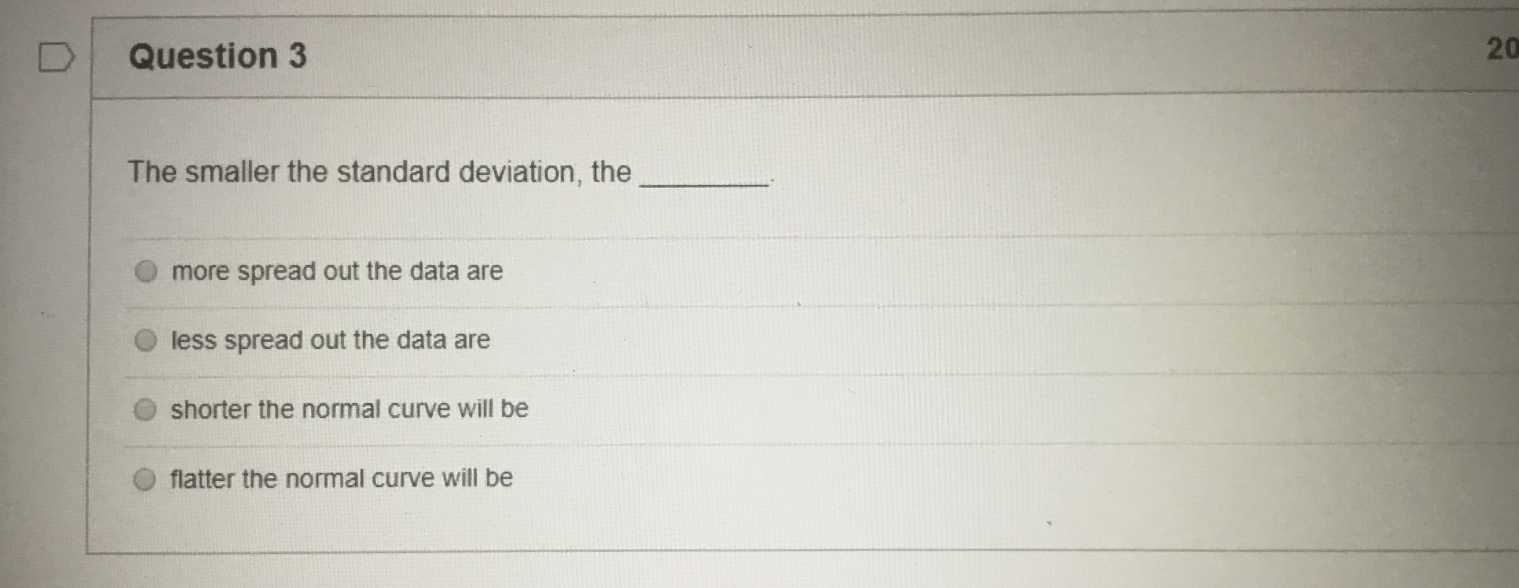 Question 1 20 pts Using the Standard Normal Table, determine the ...